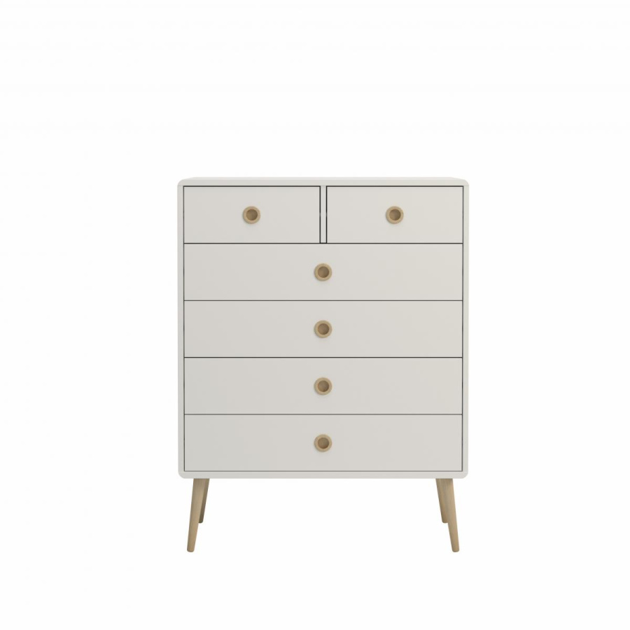 Elegantní řada Soter je ztělesněním jemných linií. Design nábytku vyrobeného z odolných MDF desek se vyznačuje zaoblenými hranami, kulatými úchytkami a nohami z masivního dubu. Sortiment této série dánského výrobce nabízí noční stolky, komody různých velikostí a tvarů, šatní skříň, botník, toaletní stolek a konzolový stolek. Zboží je dodáváno v demontu, součástí je schematický návod na montáž.