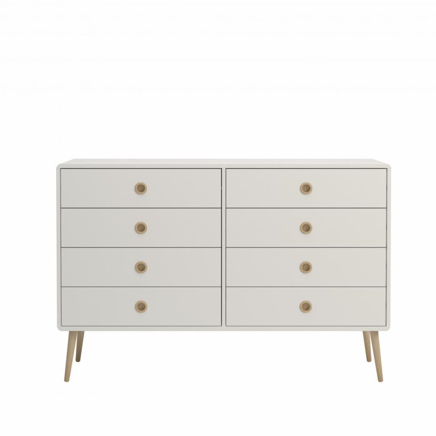 Elegantní řada Soter je ztělesněním jemných linií. Design nábytku vyrobeného z odolných MDF desek se vyznačuje zaoblenými hranami, kulatými úchytkami a nohami z masivního dubu. Sortiment této série dánského výrobce nabízí noční stolky, komody různých velikostí a tvarů, šatní skříň, botník, toaletní stolek a konzolový stolek. Zboží je dodáváno v demontu, součástí je schematický návod na montáž.