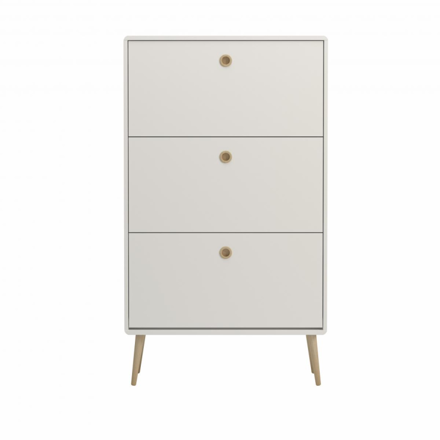 Elegantní řada Soter je ztělesněním jemných linií. Design nábytku vyrobeného z odolných MDF desek se vyznačuje zaoblenými hranami, kulatými úchytkami a nohami z masivního dubu. Sortiment této série dánského výrobce nabízí noční stolky, komody různých velikostí a tvarů, šatní skříň, botník, toaletní stolek a konzolový stolek. Zboží je dodáváno v demontu, součástí je schematický návod na montáž.
