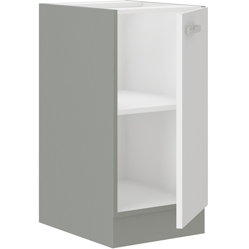 Kuchyňská skříňka je vyrobena z lamina tloušťky 16 mm bílé lesklé barvy. Korpus skříňky je v šedém provedení. Skříňka je vyrobena z kvalitních MDF desek a uvnitř najdete jednu polici. Skříňka má kovový úchyt (délka 135mm) a dvířka jsou vybavena systémem tichého zavírání. Poskládejte si z naší bohaté nabídky skříněk moderní a designovou kuchyň podle Vašich představ. V doplňkových fotografiích najdete pro inspiraci fotky kuchyní, které jsou z těchto skříněk sestaveny. Skříňka je dodávaná v demontu. Součástí je montážní plánek včetně všech potřebných spojovacích materiálů.
