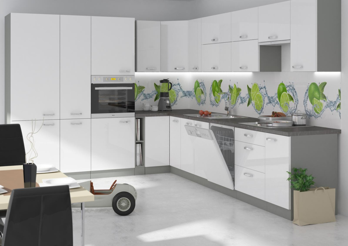 Velice praktická a dostatek místa poskytující vysoká kuchyňská skříň je vyrobena z lamina tloušťky 16 mm bílé lesklé barvy a je tak dalším krásným kouskem z této kuchyňské série. Korpus skříňky je v šedém provedení. Skříňka je rozdělená na dvě části. Horní část se skládá ze tří praktických polic. Spodní část skříně je tvořena šuplíky. Jeden nižší a dva vyšší šuplíky pro praktické uskladnění všeho co v kuchyni potřebujete. Na dvířkách jsou kovové úchytky (délka 135mm) a dveře jsou také vybaveny systémem tichého zavírání. Skříňka je vyrobena z kvalitních MDF desek. Poskládejte si z naší bohaté nabídky skříněk moderní a designovou kuchyň podle Vašich představ. Skříňka je dodávaná v demontu. Součástí je montážní plánek včetně všech potřebných spojovacích materiálů.