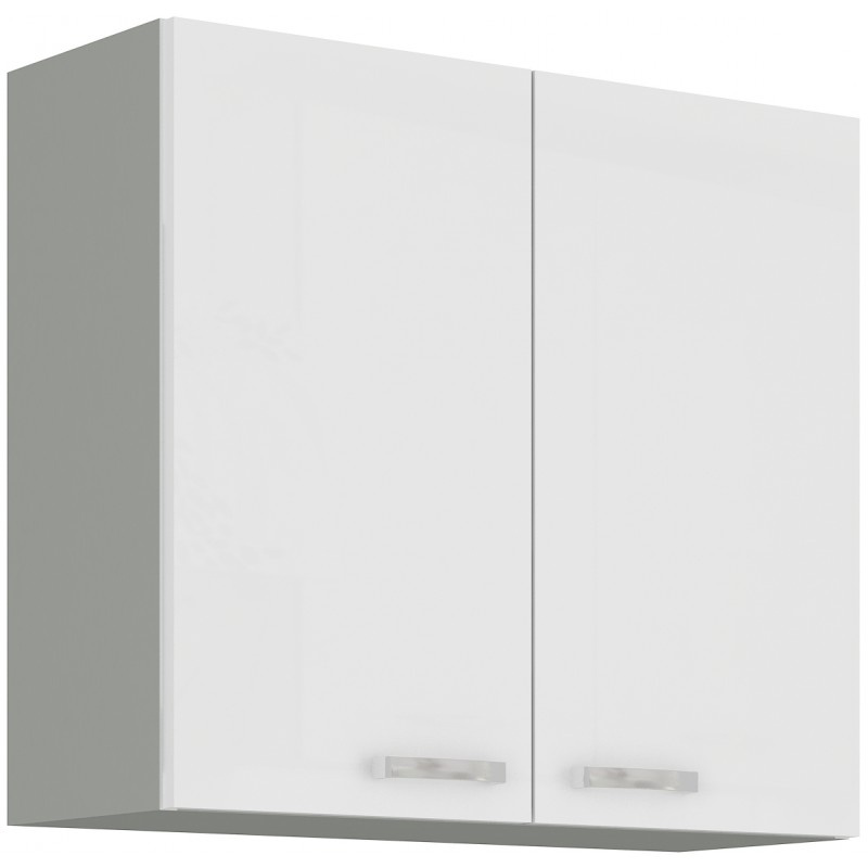 Horní kuchyňská skříňka je vyrobena z lamina tloušťky 16 mm bílé lesklé barvy. Korpus skříňky je v šedém provedení. Skříňka je vyrobena z kvalitních MDF desek a uvnitř najdete dvě police. Skříňka má kovové úchyty (délka 135mm) a dvířka jsou vybavena systémem tichého zavírání. Poskládejte si z naší bohaté nabídky skříněk moderní a designovou kuchyň podle Vašich představ. Skříňka je dodávaná v demontu. Součástí je montážní plánek včetně všech potřebných spojovacích materiálů.
