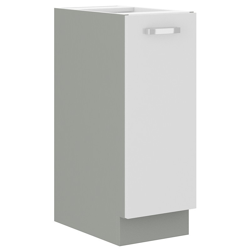 Spodní kuchyňská skříňka je vyrobena z lamina tloušťky 16 mm bílé lesklé barvy. Korpus skříňky je v šedém provedení. Dvířka jsou vybavena kovovou úchytkou (délka 135mm) a systémem tichého zavírání. Skříňka je vyrobena z kvalitních MDF desek. Skříňka je vybavena nerezovým košem Cargo. Poskládejte si z naší bohaté nabídky skříněk moderní a designovou kuchyň podle Vašich představ. Skříňka je dodávaná v demontu. Součástí je montážní plánek včetně všech potřebných spojovacích materiálů.