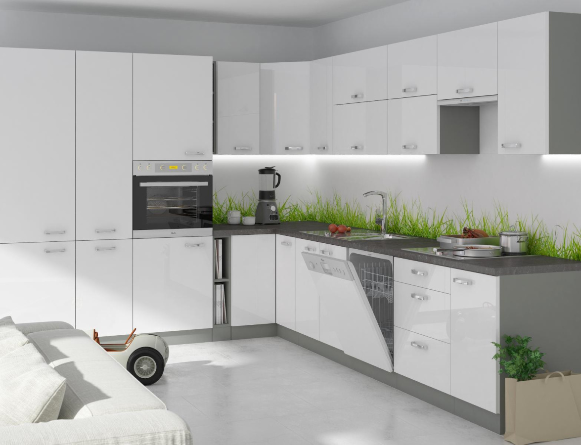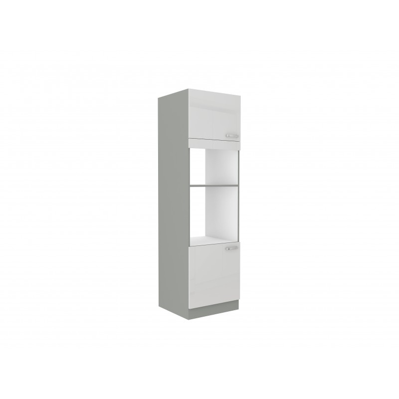 Vysoká kuchyňská skříň je určena pro vestavěnou mikrovlnou troubu a vestavěnou troubu. Vrchní skříňka nad skříní má zabudovanou jednu polici. Skříň je vyrobena z lamina tloušťky 16 mm bílé lesklé barvy a bude dalším krásným kouskem ve Vaší kuchyňské sérii. Korpus skříňky je v šedém provedení. Na dvířkách jsou kovové úchytky ( délka 135mm) a dveře jsou vybaveny systémem tichého zavírání. Skříňka je vyrobena z kvalitních MDF desek. Poskládejte si z naší bohaté nabídky skříněk moderní a designovou kuchyň podle Vašich představ. Skříňka je dodávaná v demontu. Součástí je montážní plánek včetně všech potřebných spojovacích materiálů.