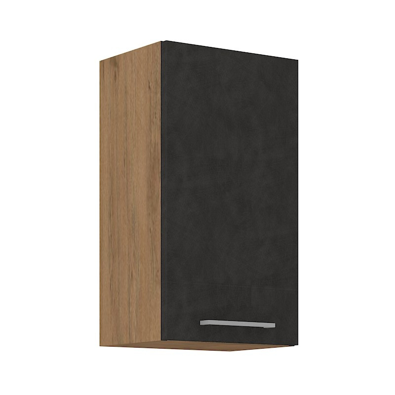 Tato vrchní kuchyňská skříňka je vyrobena z lamina tloušťky 16 mm barvy matera mat. Korpus skříňky je v provedení dub lancelot a vnitřek skříňky má bílou barvu. Skříňka je vyrobena z kvalitních MDF desek a uvnitř najdete dvě police, které Vám poskytnou dostatek místa. Dvířka mají kovový úchyt (délka 192mm) a jsou vybavena systémem tichého zavírání. Poskládejte si z naší bohaté nabídky skříněk moderní a designovou kuchyň podle Vašich představ. V doplňkových fotografiích najdete pro inspiraci fotky kuchyní, které jsou z těchto skříněk sestaveny. Skříňka je dodávaná v demontu. Součástí je montážní plánek včetně všech potřebných spojovacích materiálů.