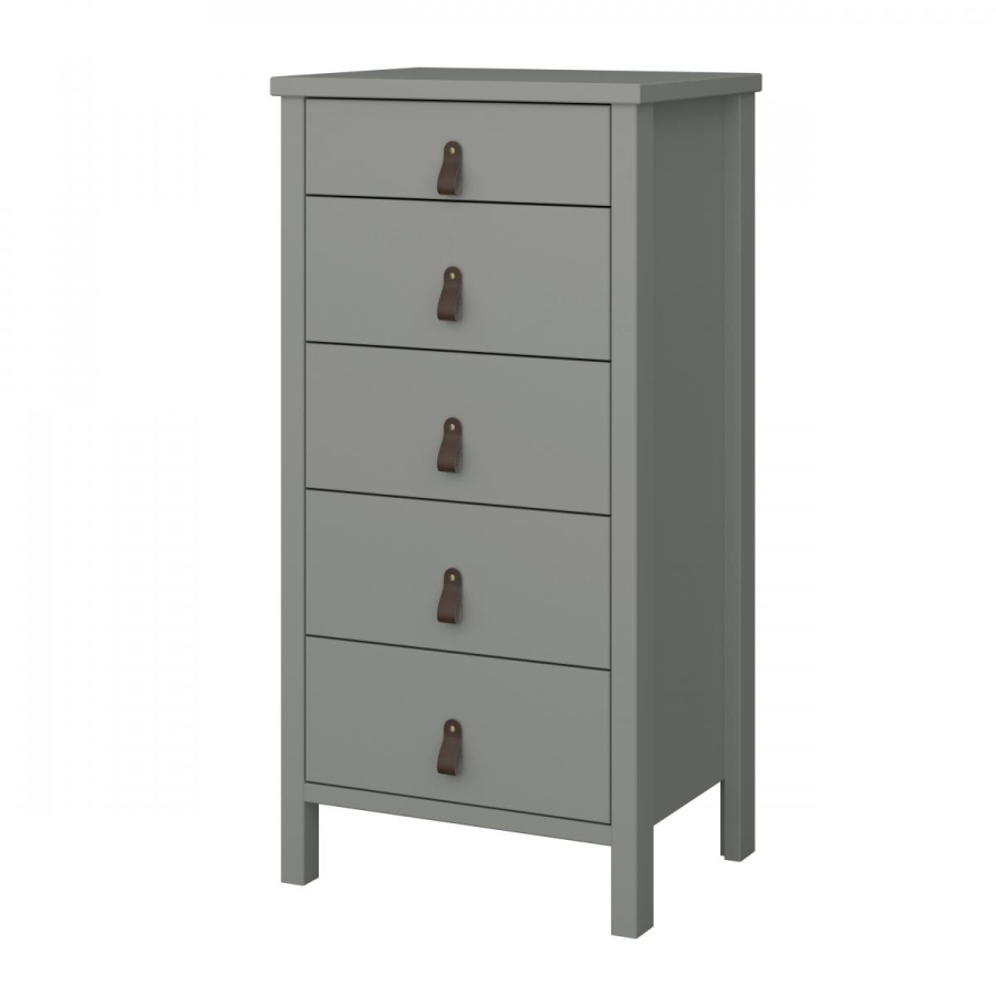 Komoda Tuan 5S šedá/kožené úchytky