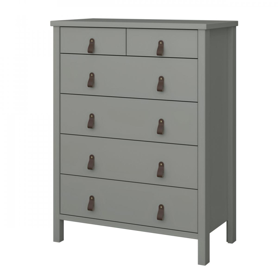 Komoda Tuan 2+4S šedá/kožené úchytky
