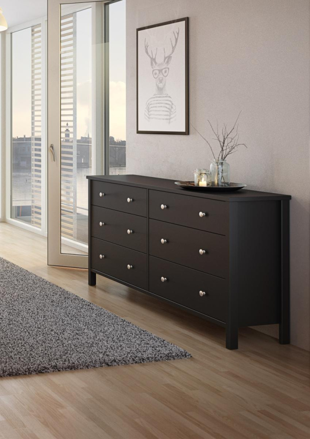 Moderní skandinávský design v minimalistickém stylu. Série Tuan je jedním z nejprodávanějších sortimentů nábytku dánského výrobce. Tuto vysoce kvalitní řadu vyrobenou z MDF desek zdobí malý stylový detail - praktické rukojeti vyrobené z kovu, ale také ze stylové kůže. Sortiment se skládá ze široké škály komod, skříní, postelí, nočních stolků, stolů, botníků a polic. Zboží je dodáváno v demontu, součástí je schematický návod na montáž.