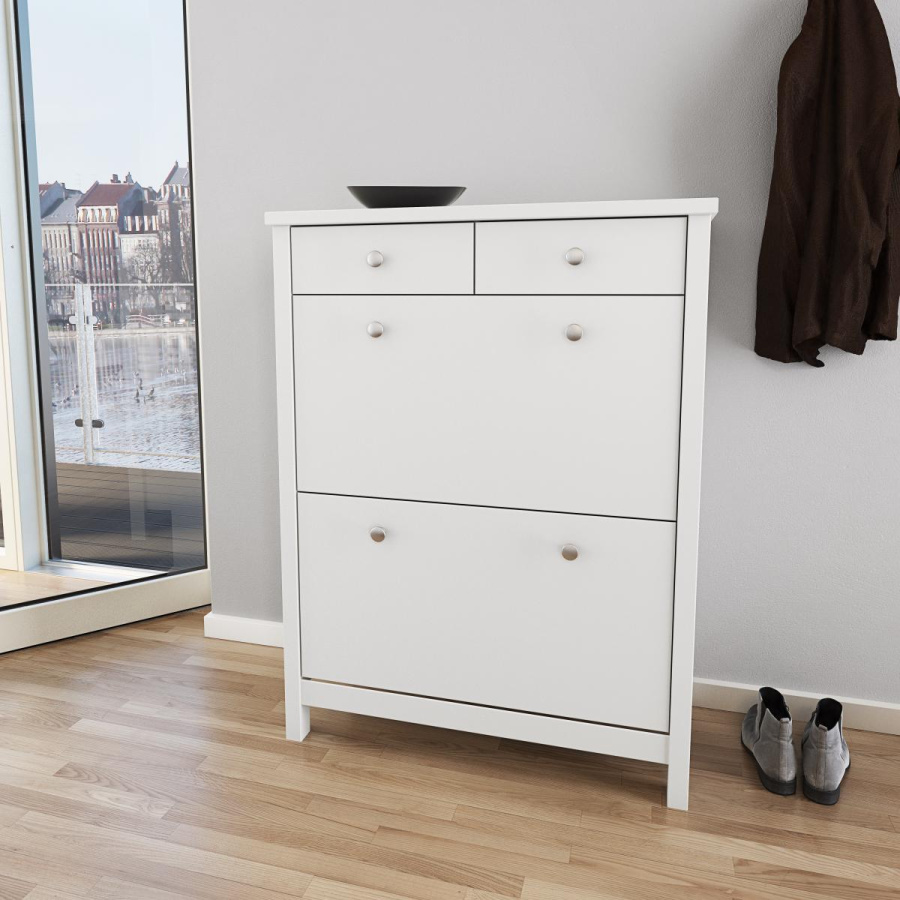 Moderní skandinávský design v minimalistickém stylu. Série Tuan je jedním z nejprodávanějších sortimentů nábytku dánského výrobce. Tuto vysoce kvalitní řadu vyrobenou z MDF desek zdobí malý stylový detail - praktické rukojeti vyrobené z kovu, ale také ze stylové kůže. Sortiment se skládá ze široké škály komod, skříní, postelí, nočních stolků, stolů, botníků a polic. Zboží je dodáváno v demontu, součástí je schematický návod na montáž.