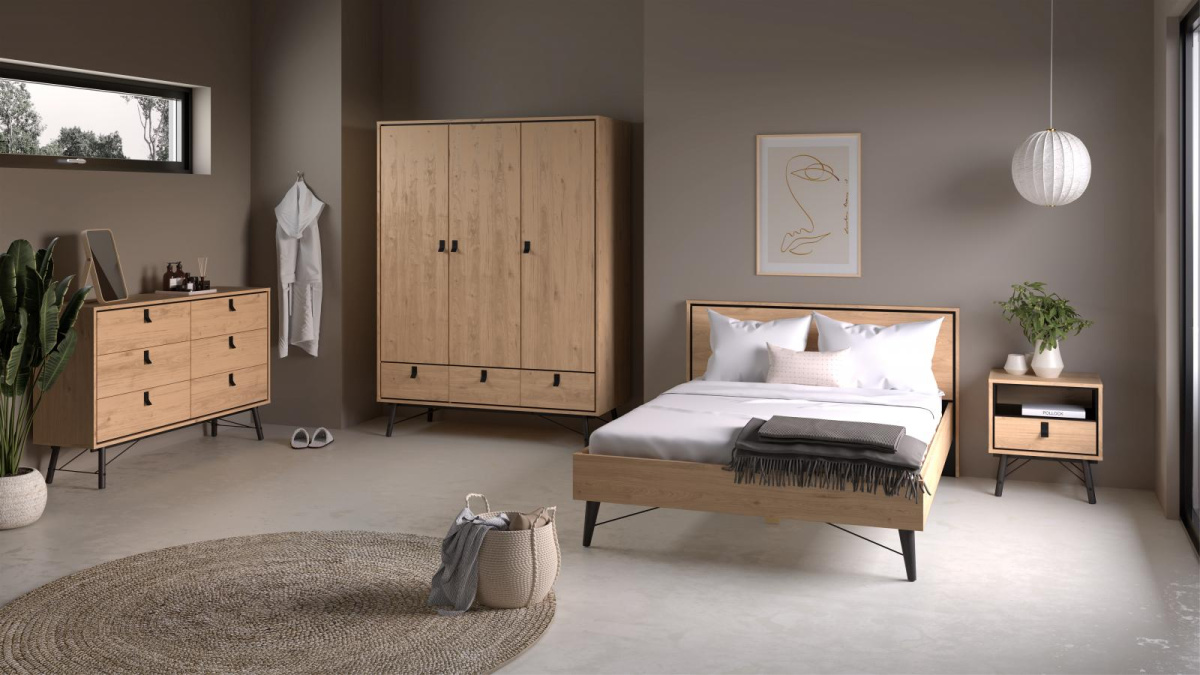Moderní řada nábytku Rain v retro stylu je vytvořená pro všechny vaše nezbytnosti. Široký sortiment vyrobený z kvalitního lamina obsahuje noční stolky, toaletní stolky, konferenční i TV stolky, komody v různých velikostech, postele a skříně. To vše nabízíme ve více barevných variantách. Zboží je dodáváno v demontu, součástí je schematický návod na montáž. Vyobrazené doplňky a dekorace nejsou v ceně.