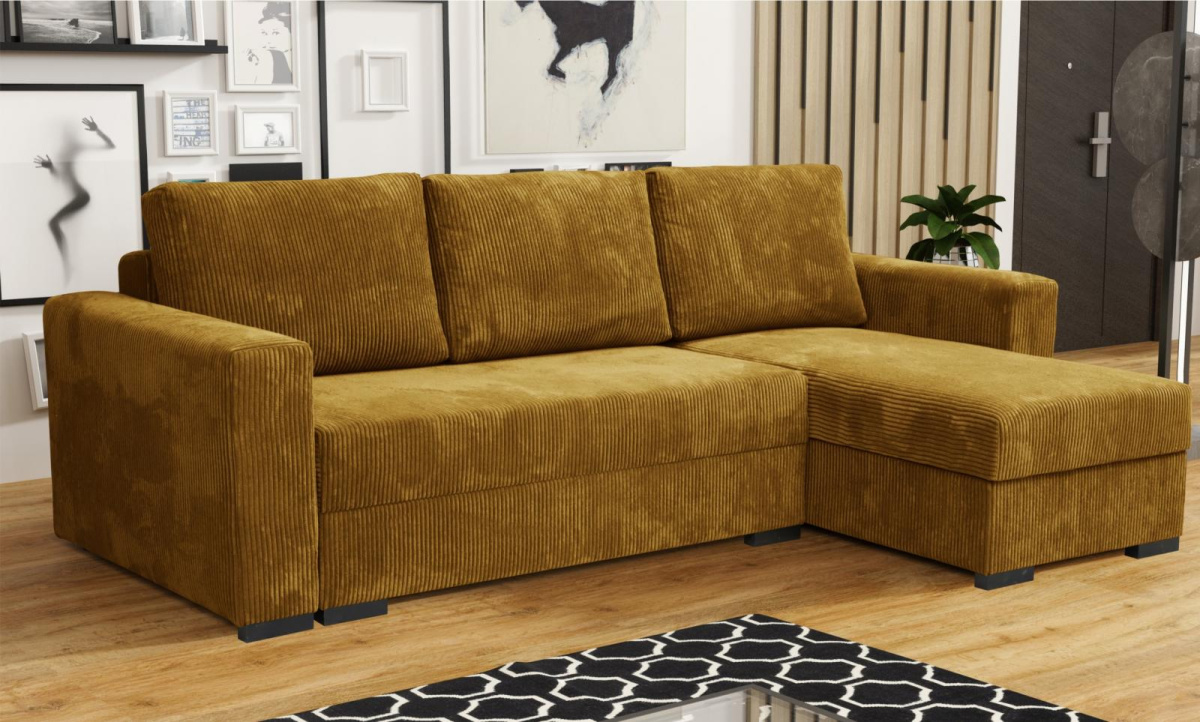 Loreta Premium je moderní rohová sedací souprava s nadčasovým designem. Její předností je pohodlí, praktičnost a univerzální použití. Můžete si ji podle potřeby sestavit jako levou nebo pravou, což je výhoda při zařizování obývacího pokoje. Nemusíte přemýšlet do jakého rohu postavíte sedací soupravu, jednoduše ji podle potřeby přizpůsobíte. Pohodlí při sezení zajišťuje kombinace pružin faliste s kvalitní PUR pěnou a velké opěrné polštáře, které jsou odnímatelné, takže si je můžete přizpůsobit svým potřebám. Praktickou stránkou sedací soupravy je úložný prostor a možnost rozložení k občasnému přespání Vaší návštěvy. Sedací souprava je potažena jednobarevnou látkou Poso, která se vyznačuje sametově jemným povrchem a svým typickým vzhledem připomíná manšestr. V nabídce najdete více barevných variant. V ceně sedací soupravy jsou 3 velké opěrné polštáře. Ostatní vyobrazené dekorace nejsou v ceně. Správná barva potahové látky je zobrazena na první fotografii. Ostatní fotografie jsou pouze ilustrační.