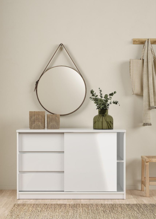 Nadčasový úložný systém, který poskytuje prostor a funkčnost. Řada Simplicity vyrobená z kvalitního lamina nabízí noční stolky, postele, komody, botníky a další úložné prostory v široké škále barevných variant a velikostí. Zboží je dodáváno v demontu. Součástí je schematický návod na montáž včetně všech potřebných spojovacích prvků. Vyobrazené doplňky a dekorace nejsou v ceně.