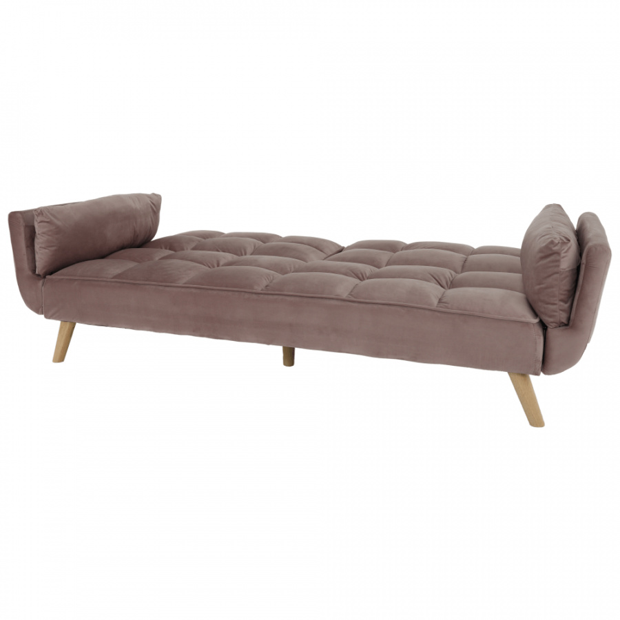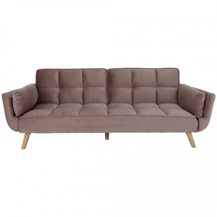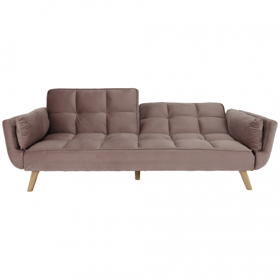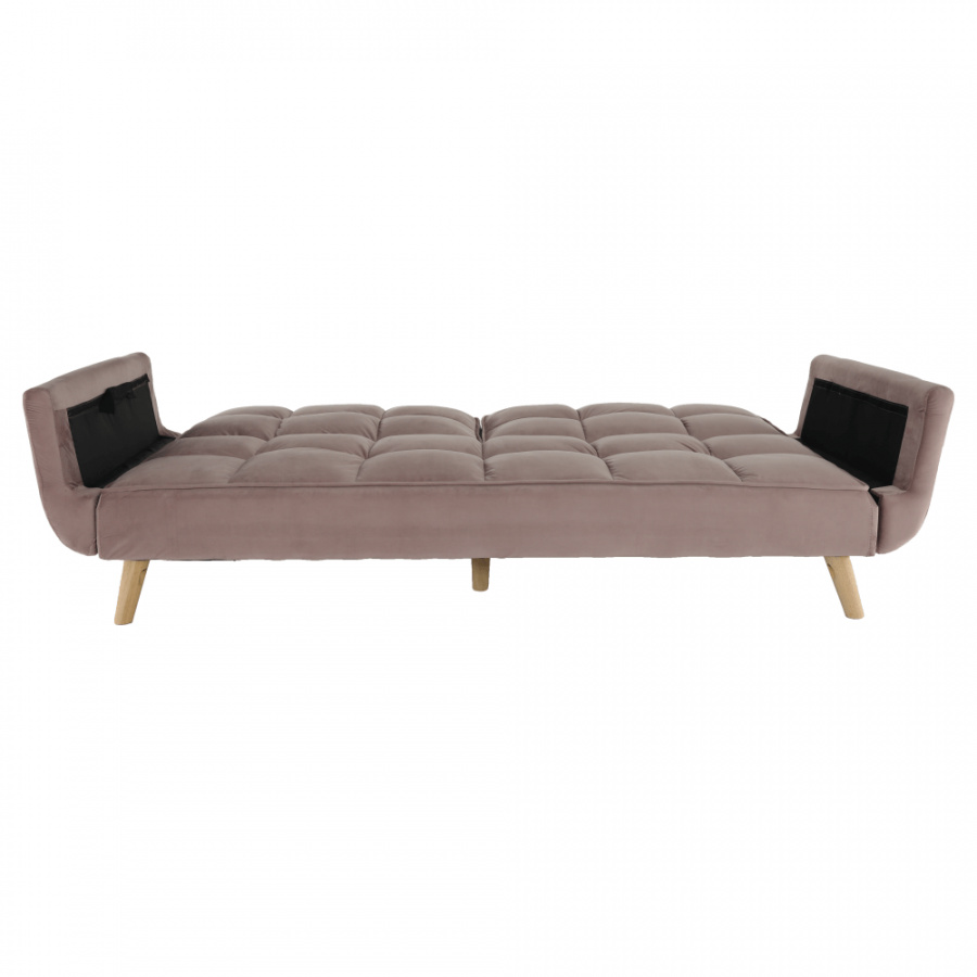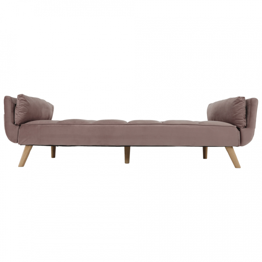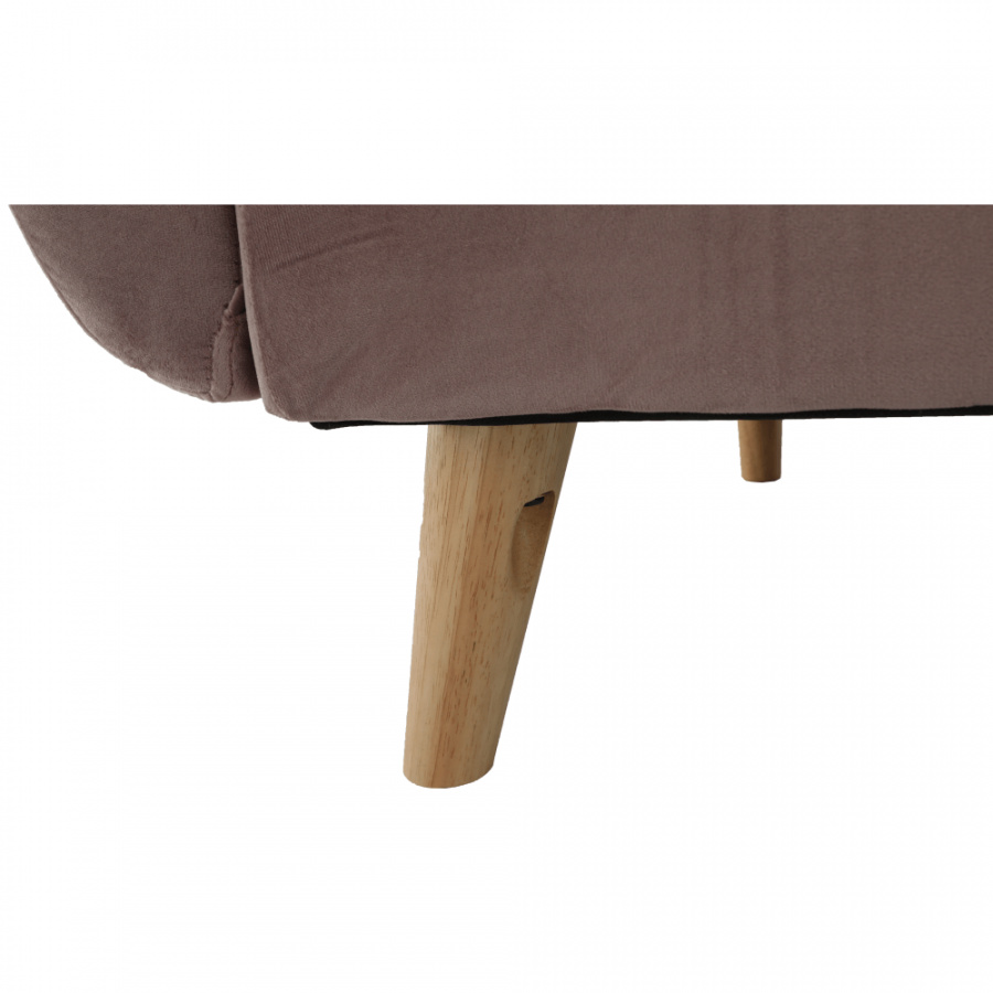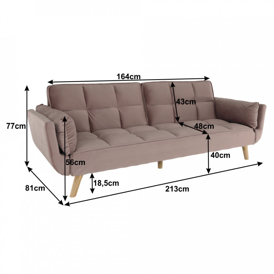 Rozkládací pohovka KAPRERA Materiál: látka Velvet / dřevo Barva: starorůžová / buk Rozměry (ŠxHxV): 213x81x77 cm Plocha na spaní (ŠxD): 166x109 cm Výška spodního prostoru od podlahy: 18,5 cm Výška sedu: 40 cm Hloubka sedu: 48 cm Dodávané v demontu.
