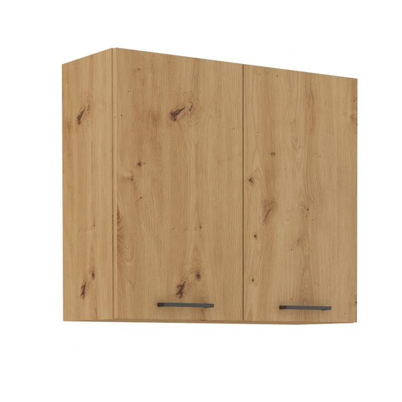 Tato vrchní dvoudvéřová kuchyňská skříňka je vyrobena z lamina tloušťky 16 mm v barvě dub artisan. Vnitřek skříňky má bílou barvu a obsahuje dvě praktické police. Skříňka je vyrobena z kvalitních MDF desek a poskytne Vám dostatek místa pro vše co budete v kuchyni potřebovat uložit. Skříňka má černý plastový úchyt (délka 136 mm) a dvířka jsou vybavena systémem tichého zavírání. Poskládejte si z naší bohaté nabídky skříněk moderní a designovou kuchyň podle Vašich představ. Skříňka je dodávaná v demontu. Součástí je montážní plánek včetně všech potřebných spojovacích materiálů.