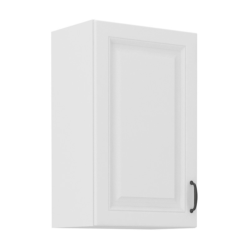 Horní kuchyňská skříňka je vyrobena z lamina tloušťky 16 mm bílé barvy. Dvířka mají černý kovový úchyt (délka 124 mm). Jsou vybavena systémem tichého zavírání a při montáži si můžete zvolit pravé či levé otevírání dveří. Vnitřek skříňky obsahuje celkem dvě police, které Vám poskytnou dostatek místa k uskladnění všeho, co budete v kuchyni potřebovat. V doplňkových fotografiích najdete další možnosti sestavení Vaši kuchyně. Nechte se inspirovat a poskládejte si z naší bohaté nabídky skříněk moderní a designovou kuchyň podle Vašich představ. Skříňka je dodávaná v demontu. Součástí je montážní plánek včetně všech potřebných spojovacích materiálů.