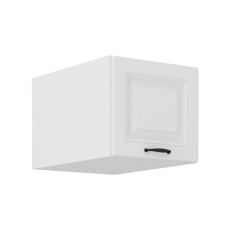 Tato vrchní kuchyňská skříňka je vyrobena z lamina tloušťky 16 mm v bílé barvě. Skříňka je vyrobena z kvalitních MDF desek. Dvířka mají černý kovový úchyt (délka 124mm) a dále jsou vybavena systémem tichého zavírání. Poskládejte si z naší bohaté nabídky skříněk moderní a designovou kuchyň podle Vašich představ. Skříňka je dodávaná v demontu. Součástí je montážní plánek včetně všech potřebných spojovacích materiálů.