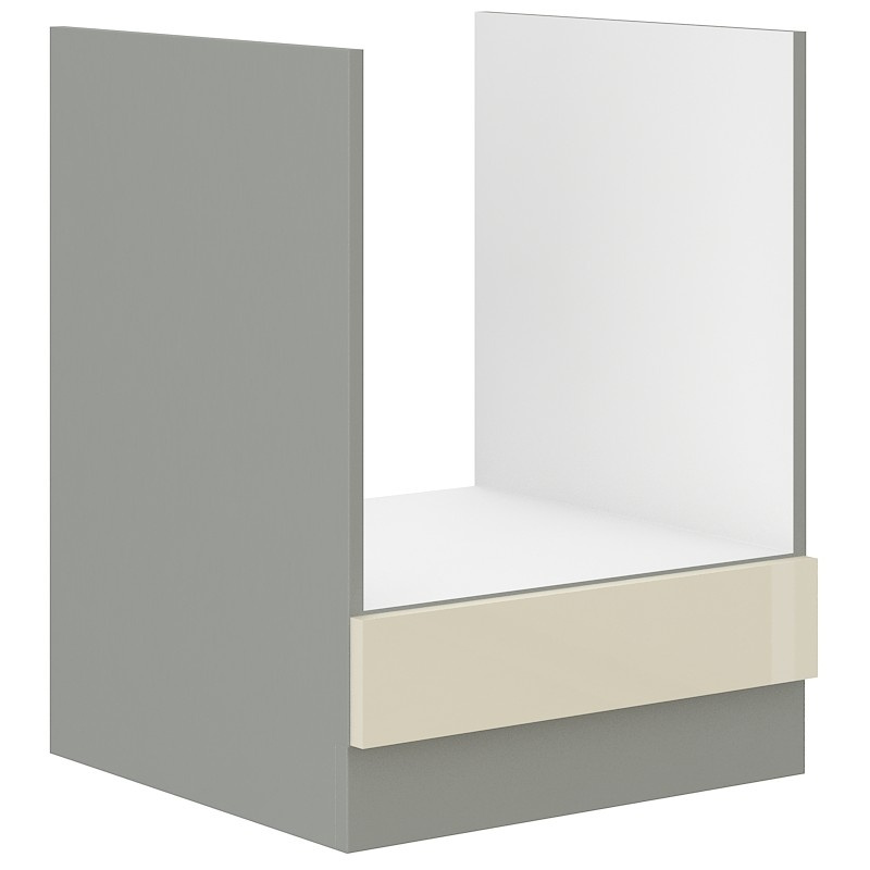 Spodní kuchyňská skříňka je vyrobena z lamina tloušťky 16 mm lesklé krémové barvy. Korpus je v šedém provedení. Tato skříňka slouží k zakomponování vestavného sporáku a je vyrobena z kvalitních MDF desek. Poskládejte si z naší bohaté nabídky skříněk moderní a designovou kuchyň podle Vašich představ. Skříňka je dodávaná v demontu. Součástí je montážní plánek včetně všech potřebných spojovacích materiálů.