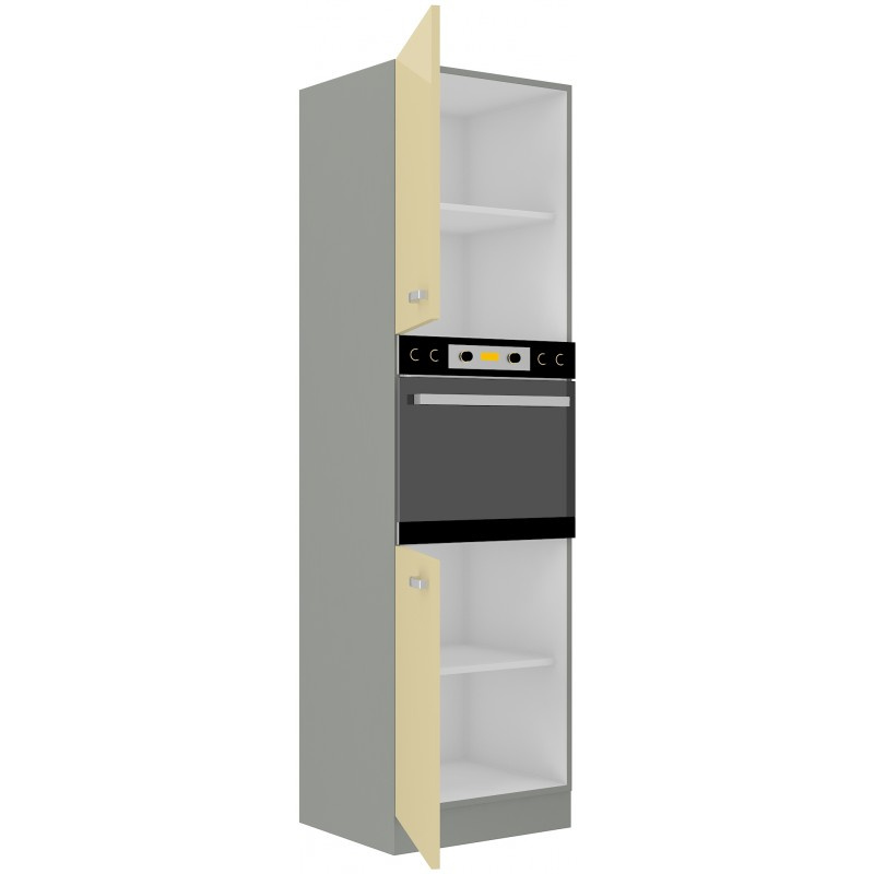 Vysoká kuchyňská skříň je určena pro vestavěnou troubu. Skříň je vyrobena z lamina tloušťky 16 mm lesklé krémové barvy a korpus skříně je v šedém provedení. Tato potravinová skříň bude dalším krásným kouskem, který oživí Vaši kuchyňskou sérii. Horní i spodní část skříně obsahuje jednu bílou praktickou polici. Na dvířkách jsou lesklé kovové úchytky ( délka 135 mm) a dále jsou vybaveny systémem tichého zavírání. Skříňka je vyrobena z kvalitních MDF desek. Poskládejte si z naší bohaté nabídky skříněk moderní a designovou kuchyň podle Vašich představ. Skříňka je dodávaná v demontu. Součástí je montážní plánek včetně všech potřebných spojovacích materiálů.