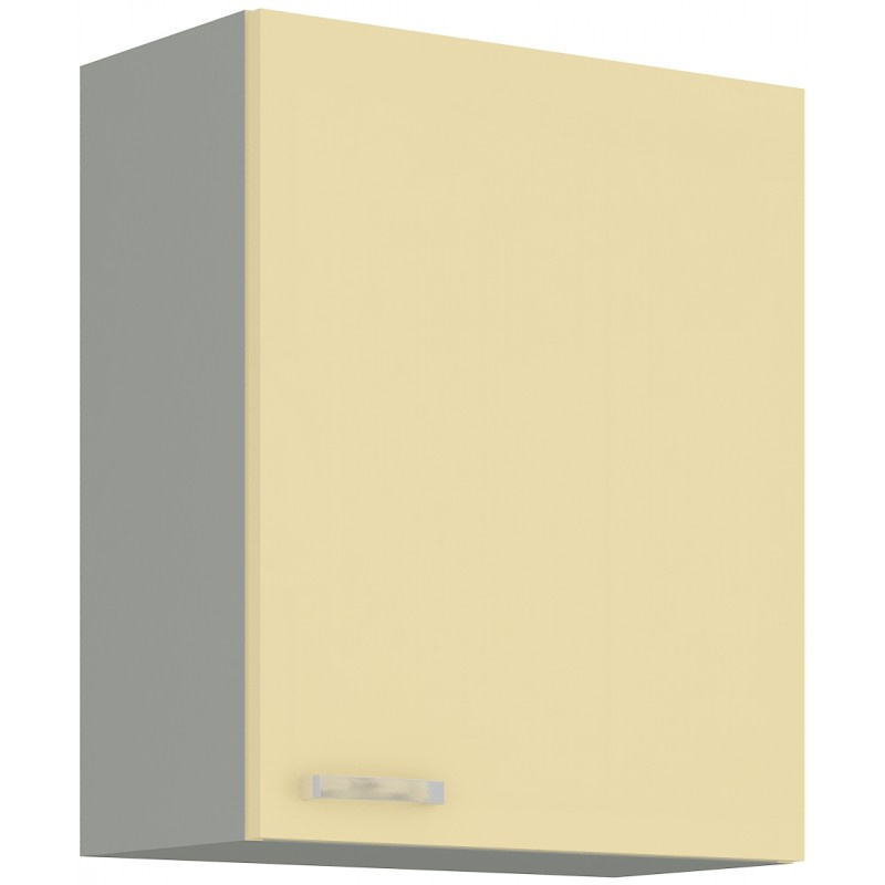 Horní kuchyňská skříňka je vyrobena z lamina tloušťky 16 mm lesklé krémové barvy. Korpus je v šedém provedení Dvířka mají lesklý kovový úchyt (délka 135 mm). Jsou vybavena systémem tichého zavírání a při montáži si můžete zvolit pravé či levé otevírání dveří. Vnitřek skříňky je v bílé barvě a obsahuje celkem dvě police, které Vám poskytnou dostatek místa k uskladnění všeho, co budete v kuchyni potřebovat. Nechte se inspirovat a poskládejte si z naší bohaté nabídky skříněk moderní a designovou kuchyň podle Vašich představ. Skříňka je dodávaná v demontu. Součástí je montážní plánek včetně všech potřebných spojovacích materiálů.