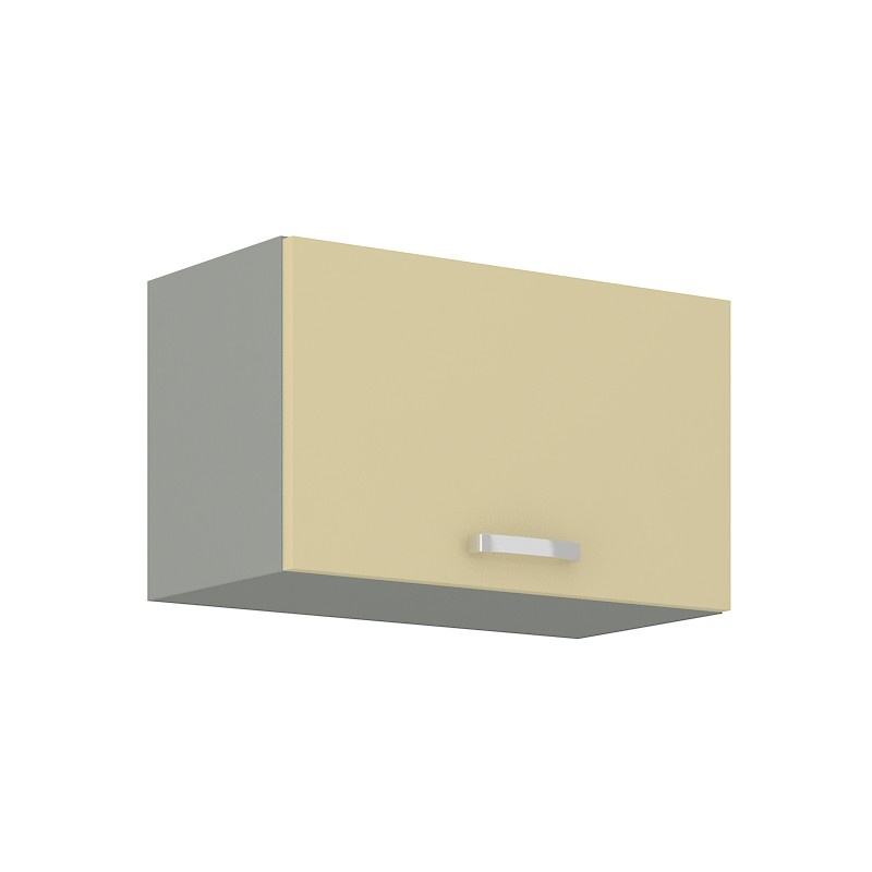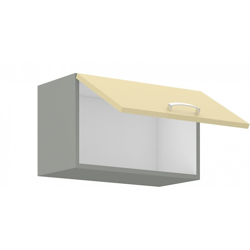 Tato vrchní kuchyňská skříňka s horním otvíráním dvířek je vyrobena z lamina tloušťky 16 mm lesklé krémové barvy. Korpus je v šedém provedení. Skříňka je vyrobena z kvalitních MDF desek a poskytne Vám dostatek místa. Skříňka má lesklý kovový úchyt (délka 135 mm) a dvířka jsou vybavena systémem tichého zavírání. Poskládejte si z naší bohaté nabídky skříněk moderní a designovou kuchyň podle Vašich představ. Skříňka je dodávaná v demontu. Součástí je montážní plánek včetně všech potřebných spojovacích materiálů.