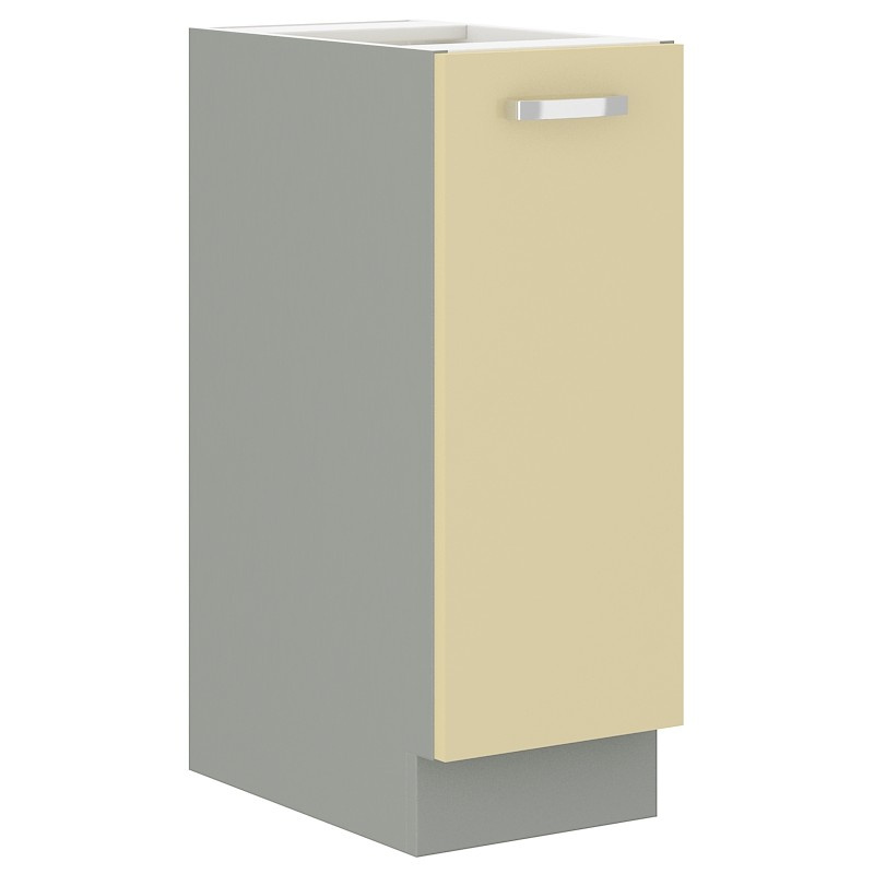 Spodní kuchyňská skříňka je vyrobena z lamina tloušťky 16 mm krémové lesklé barvy. Korpus skříňky je v šedém provedení. Dvířka jsou vybavena lesklou kovovou úchytkou (délka 135mm) a systémem tichého zavírání. Skříňka je vyrobena z kvalitních MDF desek. Je vybavena nerezovým košem Cargo se dvěmi policemi. Poskládejte si z naší bohaté nabídky skříněk moderní a designovou kuchyň podle Vašich představ. Skříňka je dodávaná v demontu. Součástí je montážní plánek včetně všech potřebných spojovacích materiálů.