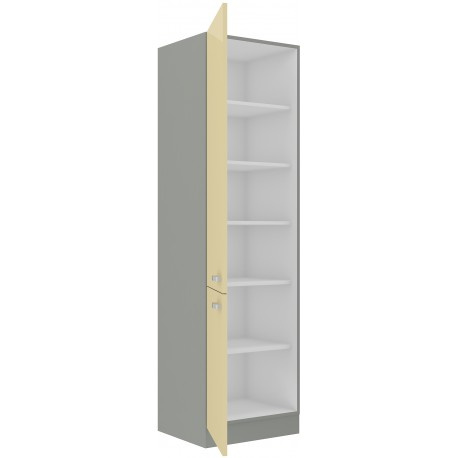 Vysoká kuchyňská skříňka je vyrobena z lamina tloušťky 16 mm lesklé krémové barvy. Koprus je v šedém provedení. Skříňka je vyrobena z kvalitních MDF desek. Dvířka mají lesklé kovové úchyty (délka 135mm) a lze je namontovat horizontálně či vertikálně. Vnitřek skříňky obsahuje celkem pět polic, které Vám poskytnou dostatek místa k uskladnění všeho, co budete v kuchyni potřebovat. Dvířka jsou vybavena systémem tichého zavírání a při montáži si můžete zvolit pravé či levé otevírání dveří. Poskládejte si z naší bohaté nabídky skříněk moderní a designovou kuchyň podle Vašich představ. Skříňka je dodávaná v demontu. Součástí je montážní plánek včetně všech potřebných spojovacích materiálů.