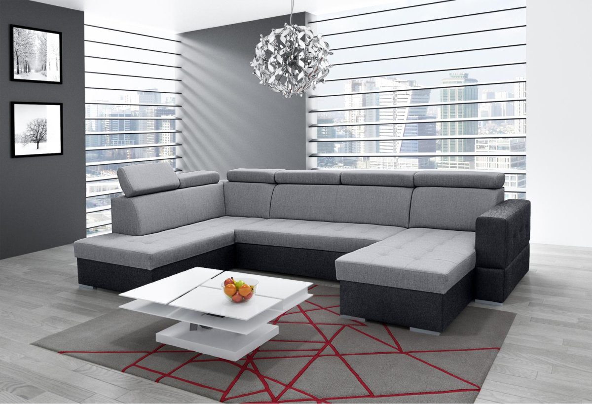 Sedací souprava Soft ve tvaru U, je velmi pohodlná, praktická a nabízí dostatek místa. Bude elegantní dominantou Vašeho obývacího pokoje a stane se příjemným centrem odpočinku a posezení s rodinou i přáteli. Praktickou stránku zajišťuje možnost rozložení a 2 úložné prostory. Jednoduchým rozkladem vznikne lůžko vhodné k příležitostnému spaní. Pohodlí při sezení zajišťuje výplň sedáků, kterou tvoří kombinace vlnitých pružin s kvalitní PUR pěnou. Při odpočinku, nebo sledování televize Vám zvýší pohodlí polohovací opěrky hlavy. Sedací soupravu nabízíme na objednávku i v jiných potahových látkách, v levém i pravém provedení. Vyobrazené dekorace nejsou v ceně. Úvodní fotografie je ilustrační. Sedací souprava bude dodána v jednobarevném provedení v potahové látce Matt Velvet 93 - vzorek je vyobrazen ve druhé doplňkové fotografii.