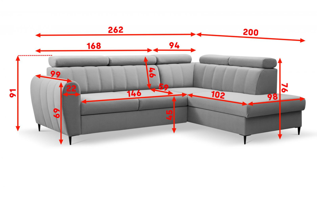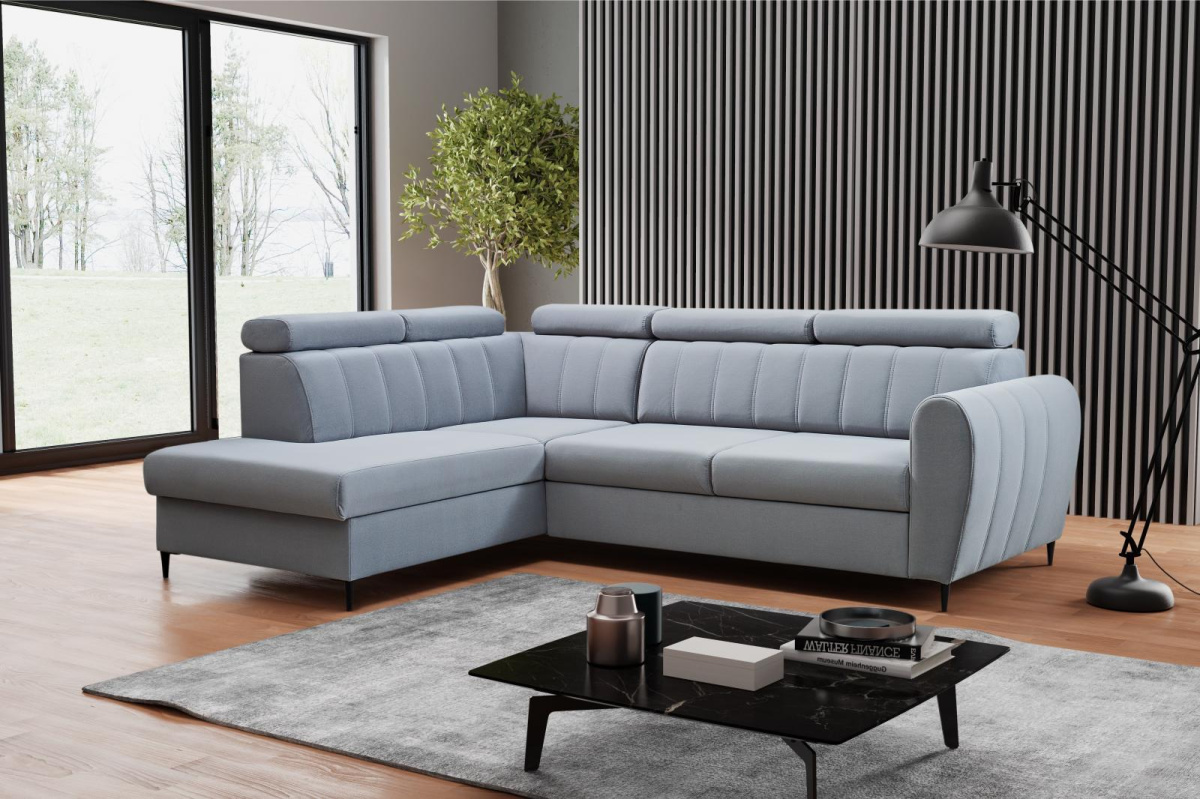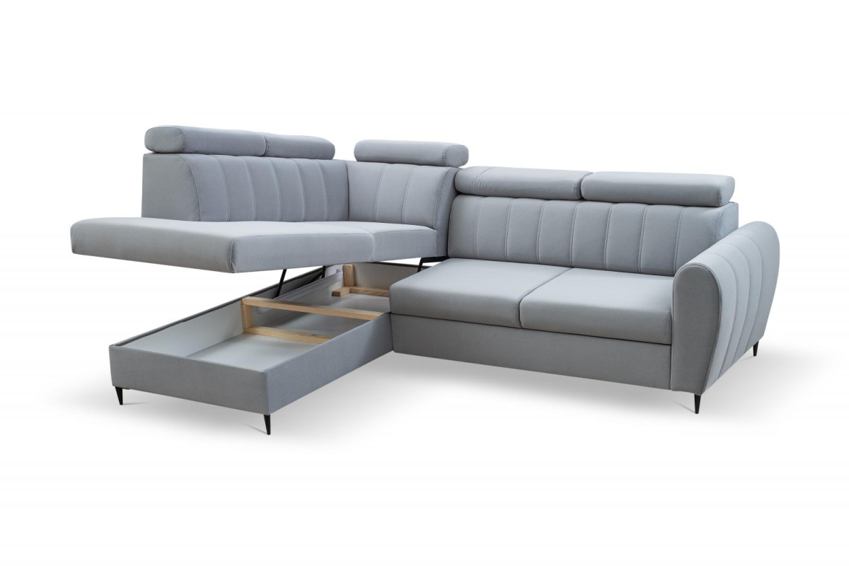 Sedací souprava Faria osloví každého, kdo preferuje moderní vzhled a zároveň pohodlí a praktičnost. Je potažena kvalitní potahovou látkou s kontratním prošitím. Díky svým rozměrům je vhodná i do menších pokojů. Sedací souprava má praktický úložný prostor, který můžete využít např, na lůžkoviny. Pohodlí při sezení zajišťuje výplň sedáků, kterou tvoří kombinace pružin faliste s kvalitní PUR pěnou. Komfort a pohodlí při odpočinku zvyšuje polohovací opěrka hlavy. Sedací soupravu nabízíme na objednávku i v jiných potahových látkách, v levém i pravém provedení. Správná barva potahové látky je zobrazena na druhé fotografii. Ostatní fotografie jsou pouze ilustrační.