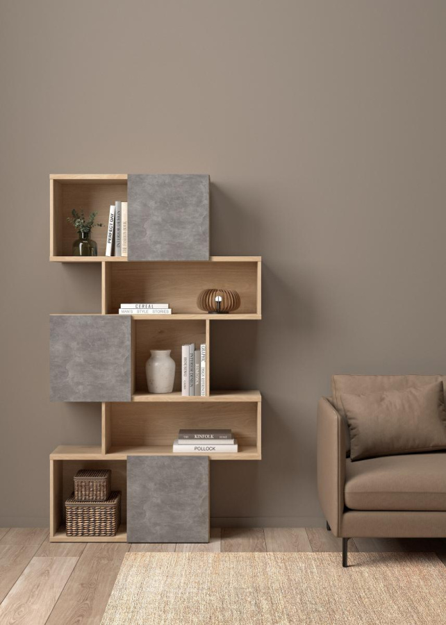 Knihovna Penta v moderním designu a asymetrickém provedení se skvěle hodí do každé místnosti vašeho domu či bytu. Praktická knihovna je vyrobená z odolného a snadno udržovatelného lamina.