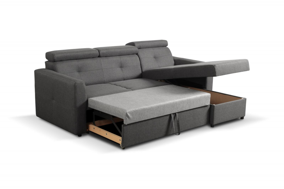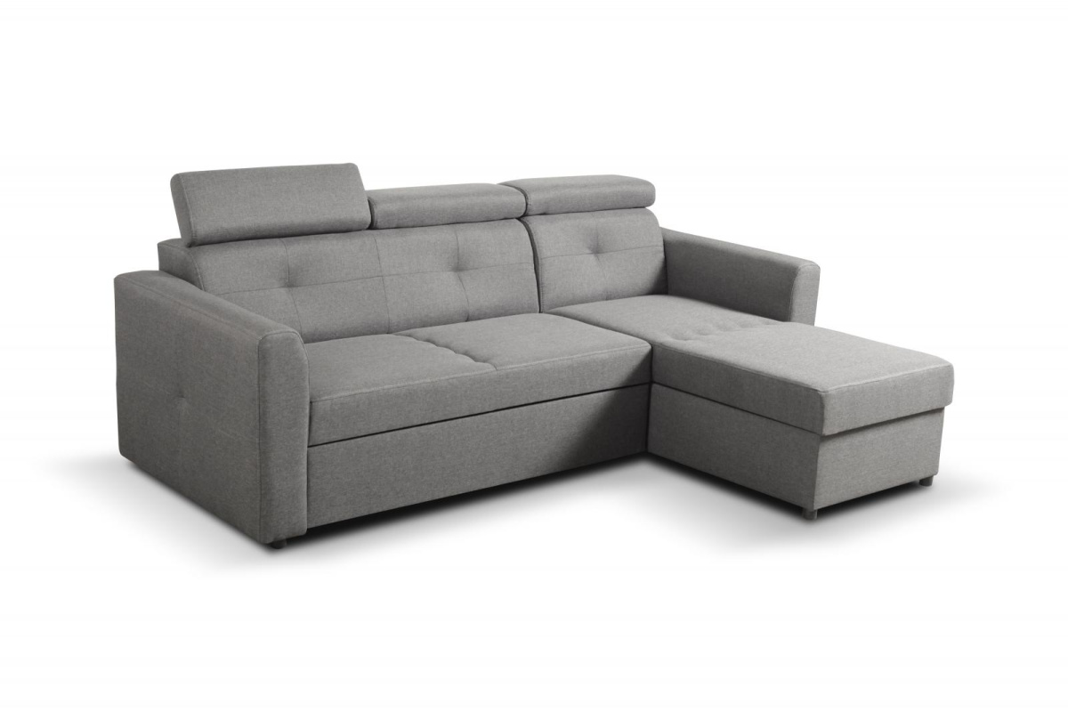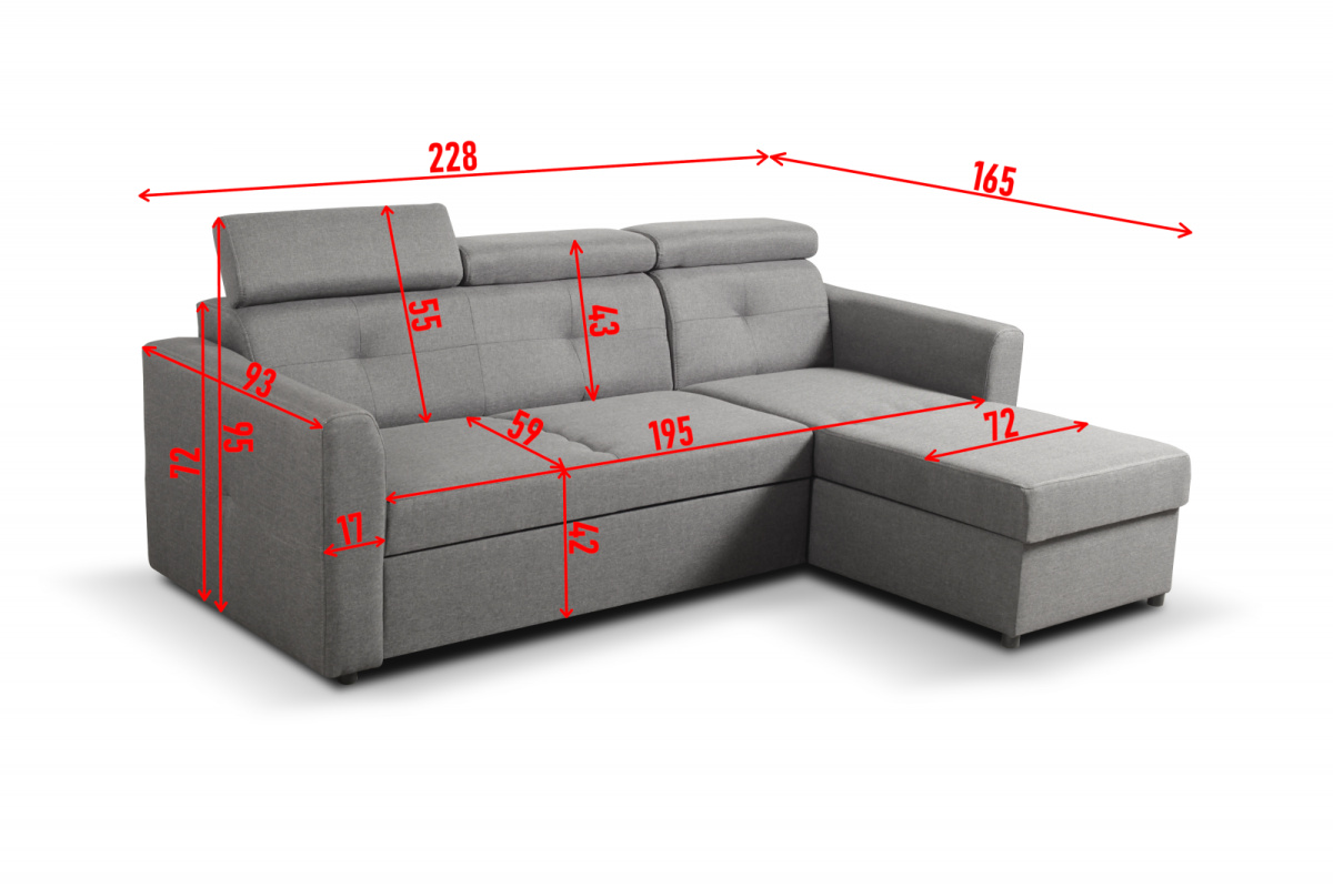 Sedací souprava Esma je vyrobena v jednoduché elegantní linii, které se hodí do moderního i klasického interiéru. Její velkou předností je univerzální použití. Tzn. že si ji můžete podle potřeby sestavit jako levou nebo pravou, což je výhoda při zařizování obývacího pokoje. Nemusíte přemýšlet do jakého rohu sedací soupravu postavíte. Jednoduše si ji podle potřeby přizpůsobíte. Sedací souprava je rozkládací. Jednoduchým rozložením pomocí automatu, vytvoříte dostatečně velké lůžko k příležitostnému přespání Vaší návštěvy. Samozřejmostí je i praktický úložný prostor, který můžete využít např. na lůžkoviny. Sedací souprava je potažena kvalitní látkou a nabízíme ji na objednávku v několika odstínech. Výplň sedáků tvoří kombinace pružin s kvalitní PUR pěnou, což zajišťuje velmi pohodlné sezení. Pro pohodlí při sezení a odpočinku je sedací souprava vybavena polohovacími opěrkami hlavy. Správná barva potahové látky je zobrazena na druhé fotografii. Ostatní fotografie jsou pouze ilustrační.