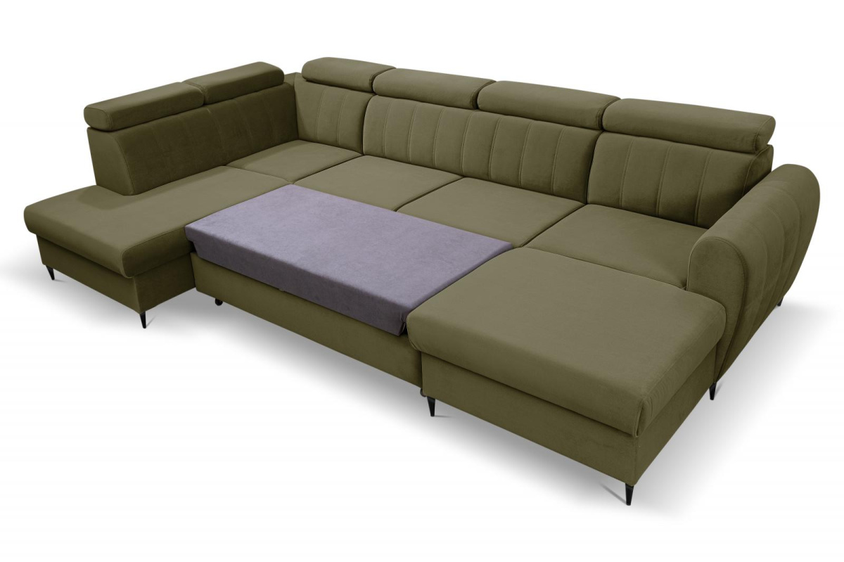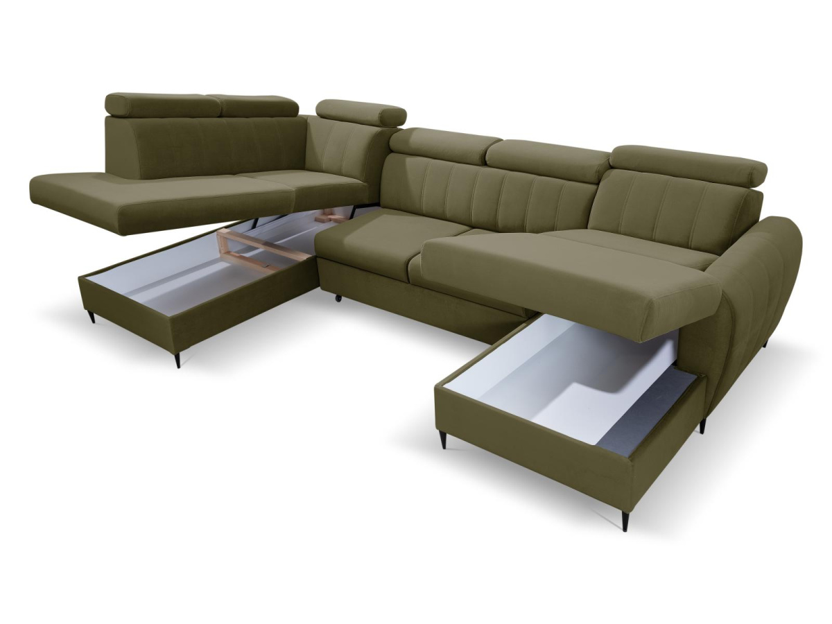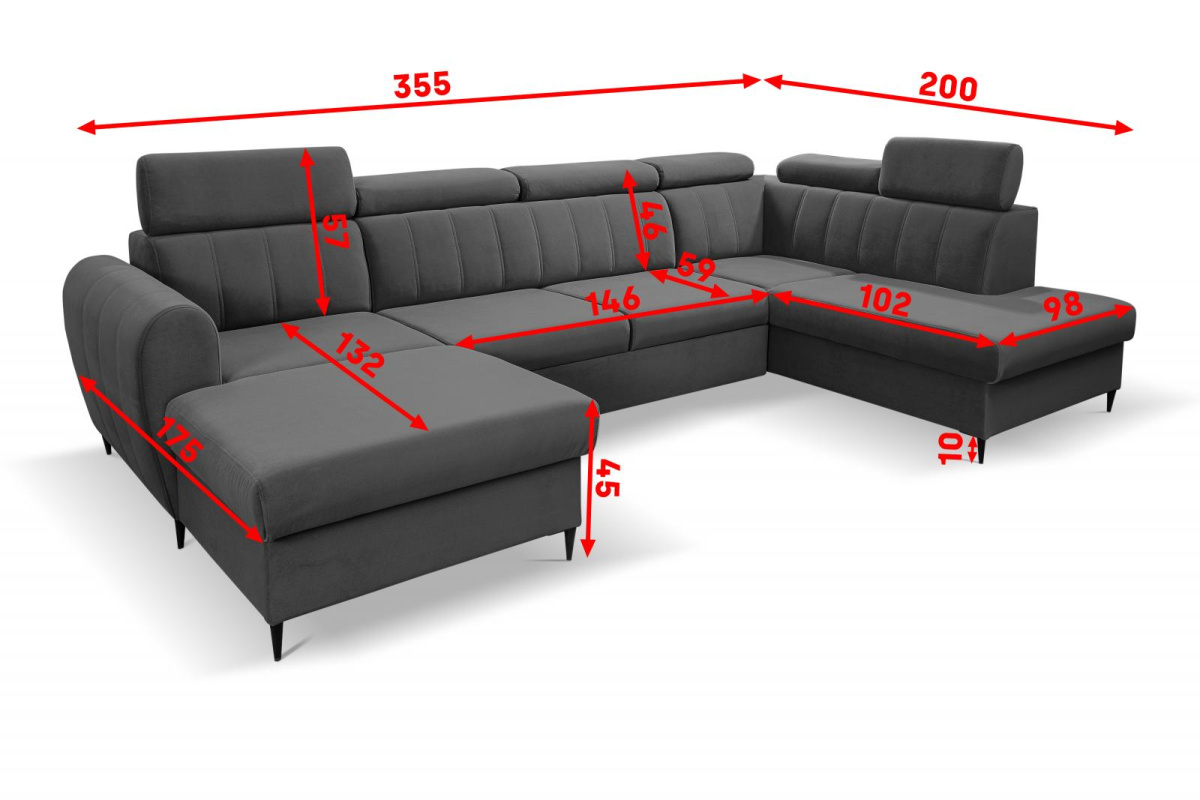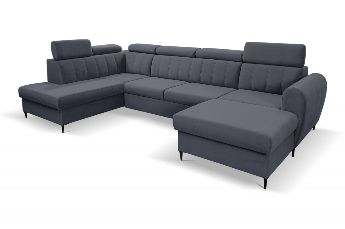 Sedací souprava Faria XL ve tvaru U osloví každého, kdo preferuje moderní vzhled a zároveň pohodlí a praktičnost. Je potažena kvalitní potahovou látkou s kontrastním prošitím. Sedací souprava je velmi pohodlná a dostatečně velká na posezení s přáteli, nebo rodinou. Pro případ, že se návštěva zdrží přes noc, je sedací souprava vybavena rozkladem, díky kterému sedací soupravu jednoduše přeměníte v prostorné lůžko. Sedací souprava má 2 praktické úložné prostory, které můžete využít např., na lůžkoviny. Pohodlí při sezení zajišťuje výplň sedáků, kterou tvoří kombinace pružin faliste s kvalitní PUR pěnou. Komfort a pohodlí při odpočinku zvyšuje polohovací opěrka hlavy. Sedací soupravu nabízíme na objednávku i v jiných potahových látkách, v levém i pravém provedení, nebo také v provedení do L. Sedací souprava bude dodána v potahové látce Kronos 22 - vzorek je vyobrazen ve druhé doplňkové fotografii. Ostatní fotografie jsou ilustrační.