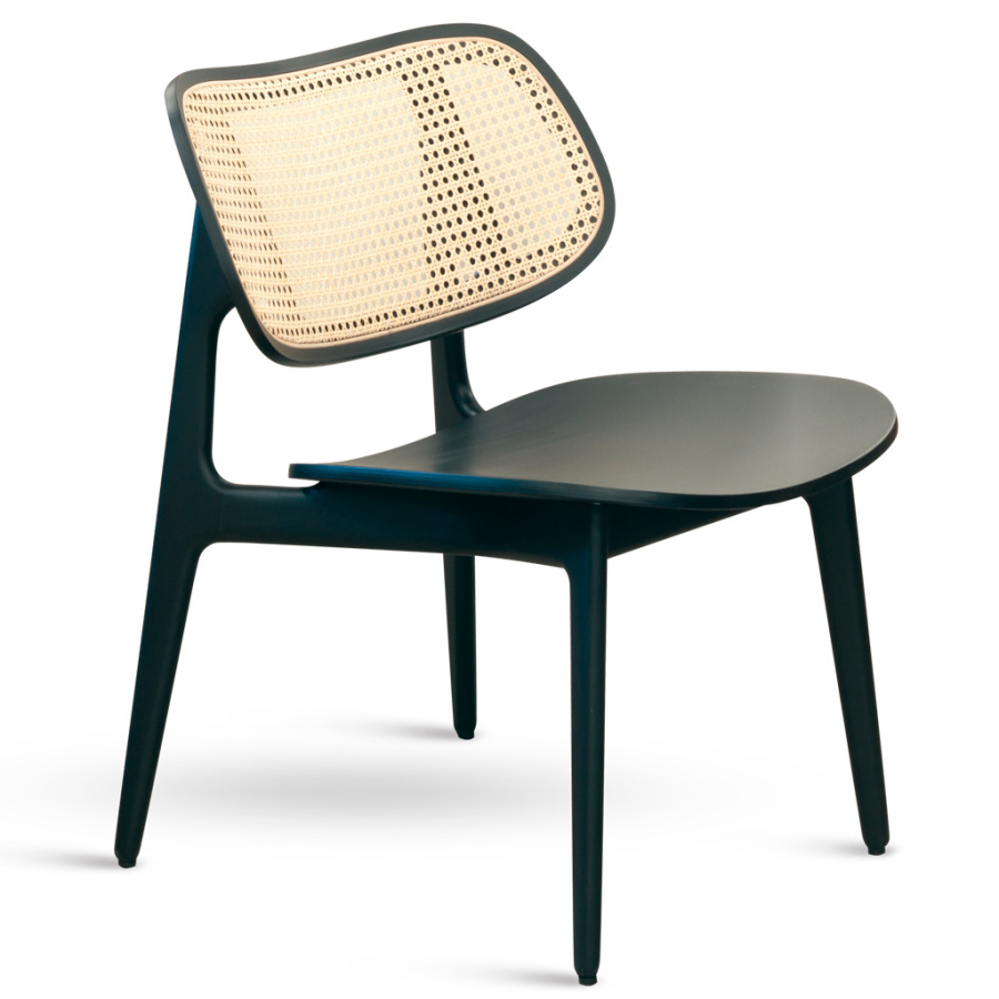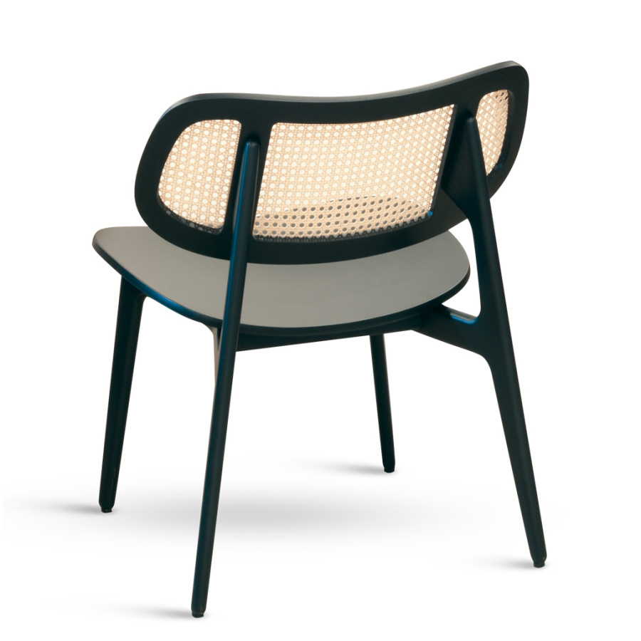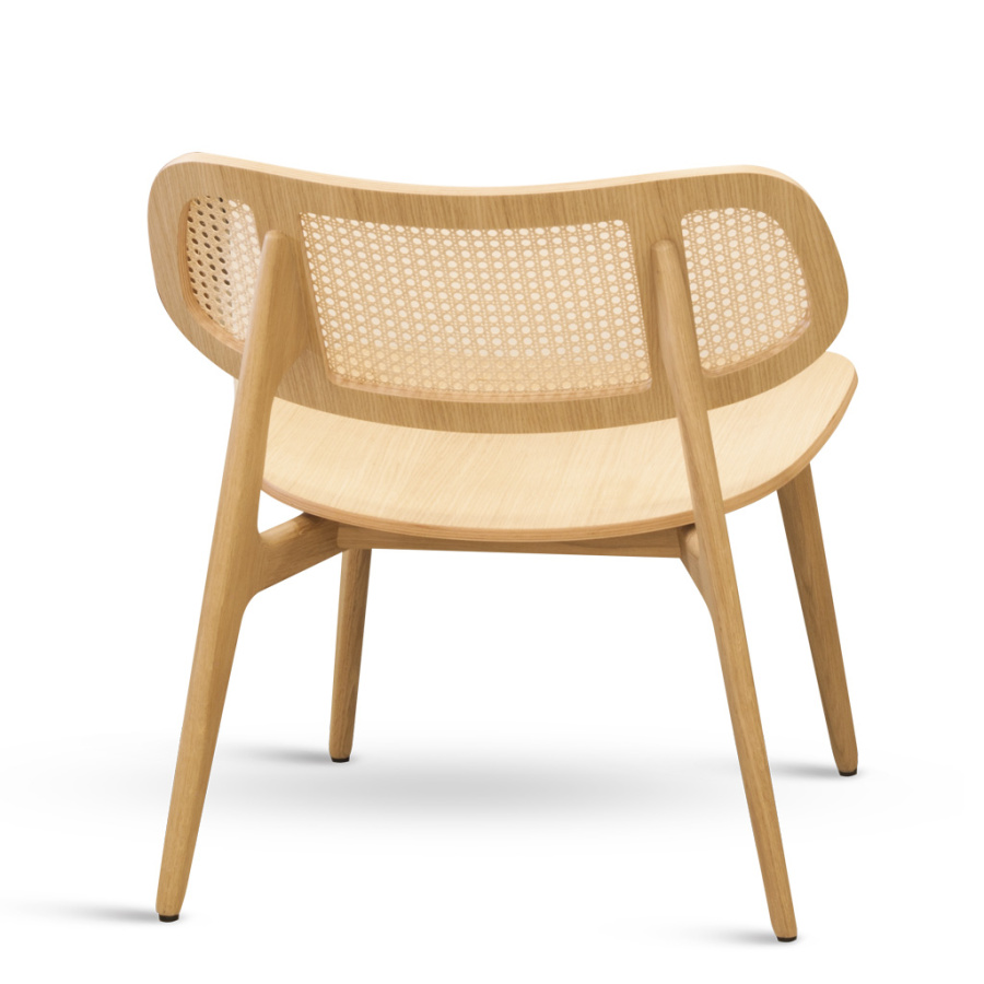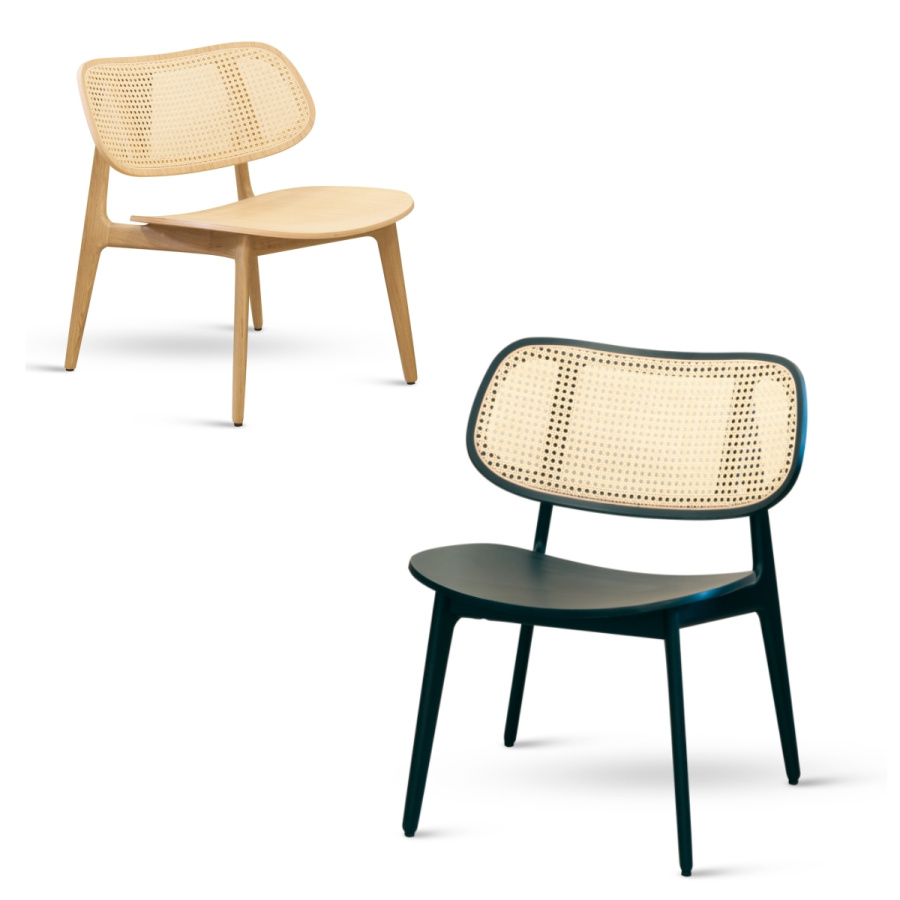 Židle BUNNY Lounge - s výpletem v opěrce. Nižší a širší, pro lobby bar, klubovnu či odpočinkový koutek doma. Nabízíme v provedení černý lak (kostra je buk) a přírodní dub masiv.