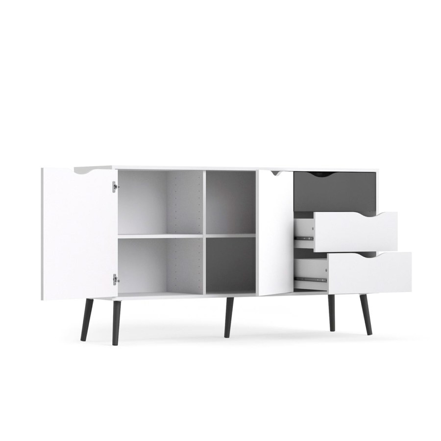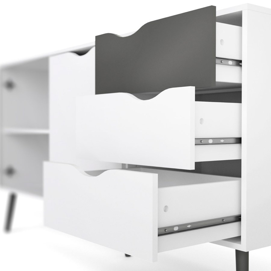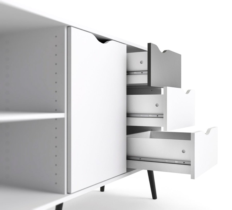 Pokud máte rádi Retro styl, pak je tato kolekce nábytku stvořena pro Vás. Nábytek je zhotoven z lamina o tl. 18 mm, které je odolné a snadné na údržbu. Díky rozmanitosti nabízených prvků, které kolekce Retro nabízí, si můžete sestavit obývací pokoj, jídelnu, ložnici, kancelář, nebo předsíň. Komoda díky svému provední nabízí univerzální použití a dostatek úložného prostoru. Díky tomu budete mít doma přehledný a organizovaný pořádek. Retro vzhled zdůrazňují vysoké šikmé nožky a obloukové výřezy místo úchytek. Komodu nabízíme ve dvou barevných provedeních. Nábytek je dodáván v demontu a součástí je montážní plánek včetně všech potřebných spojovacích materiálů. Vyobrazené dekorace nejsou v ceně.