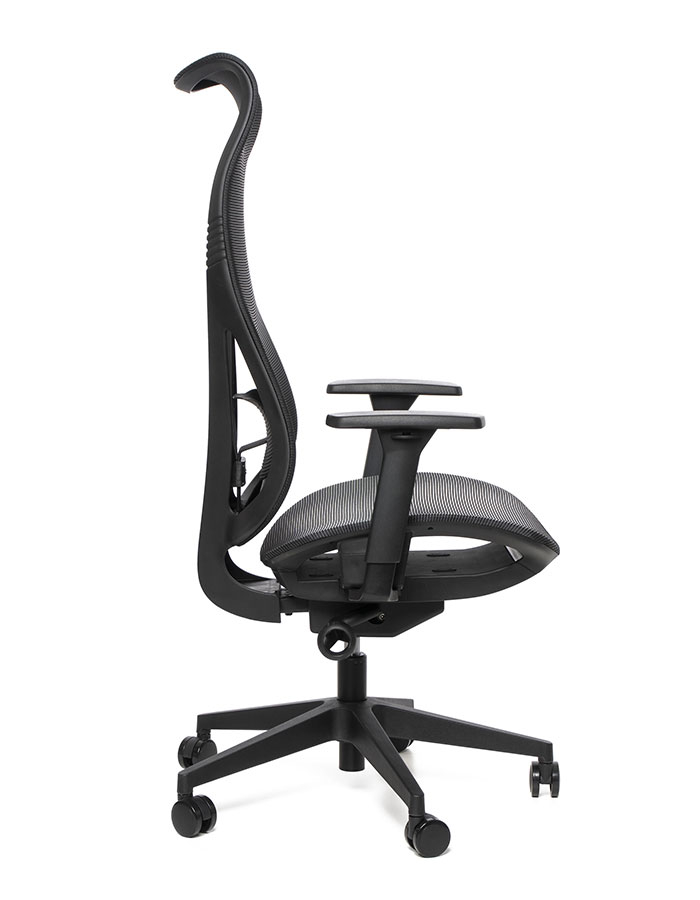 - vysoký síťovaný ergonomicky tvarovaný opěrák s integrovaným záhlavníkem - výškově nastavitelné područky z PP s měkčenými krytkami - synchronní mechanismus s vícebodovou blokací - tvarovaný síťovaný prodyšný sedák s měkkou pěnou na přední straně - nylonový kříž - univerzální kolečka Ø 60mm - čalounění: kvalitní mesh látka