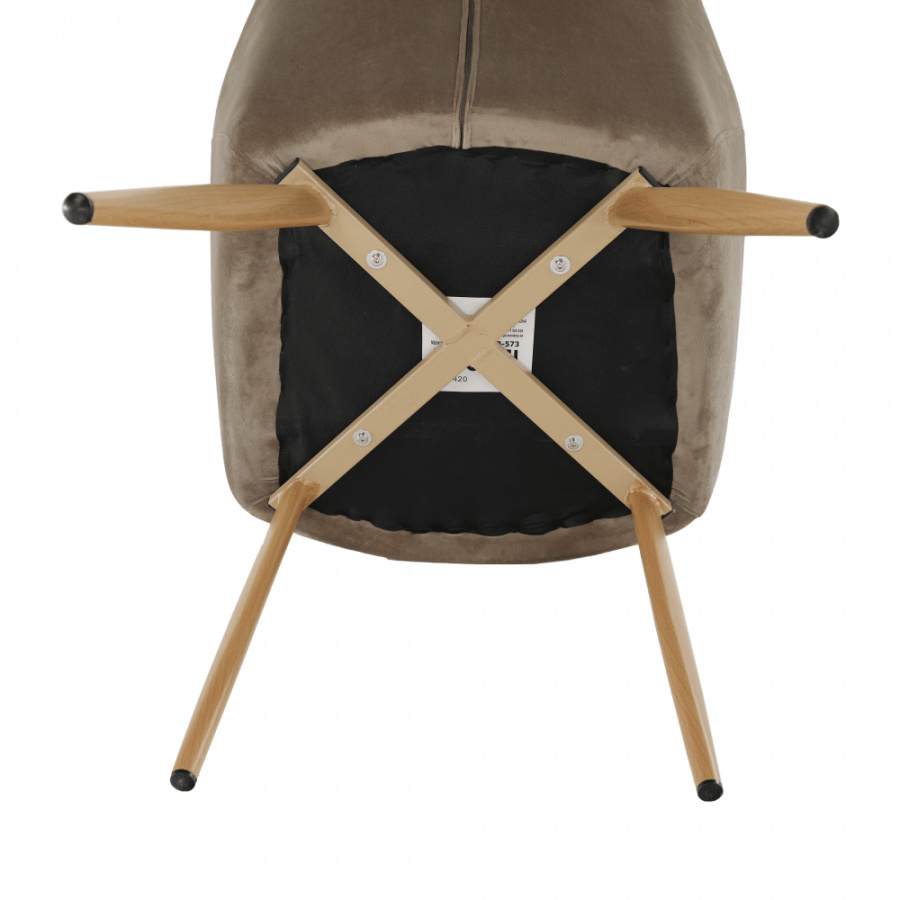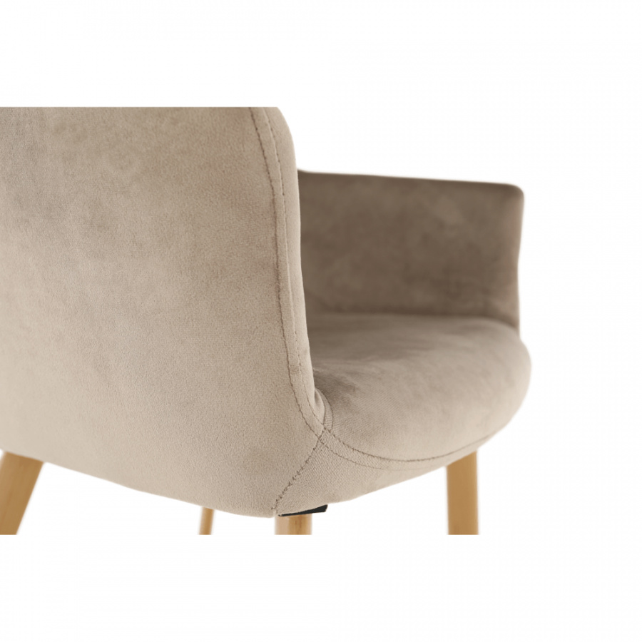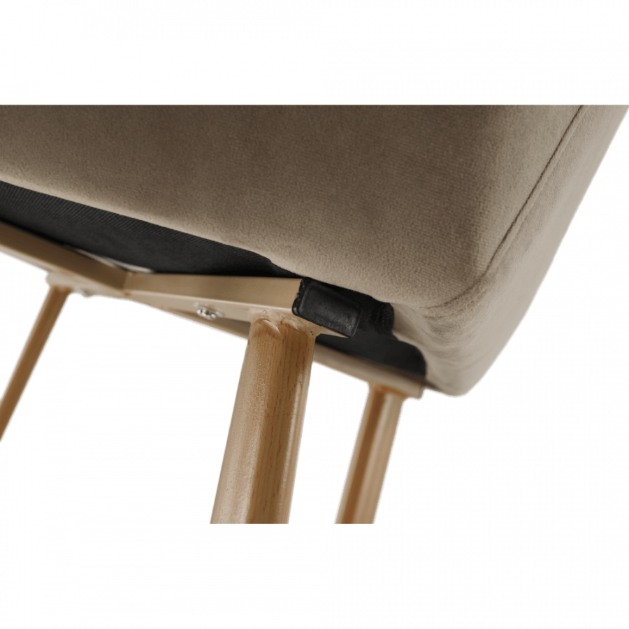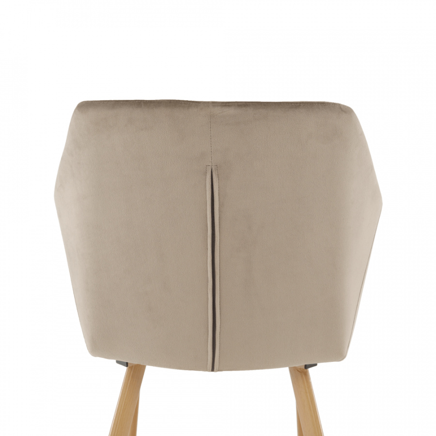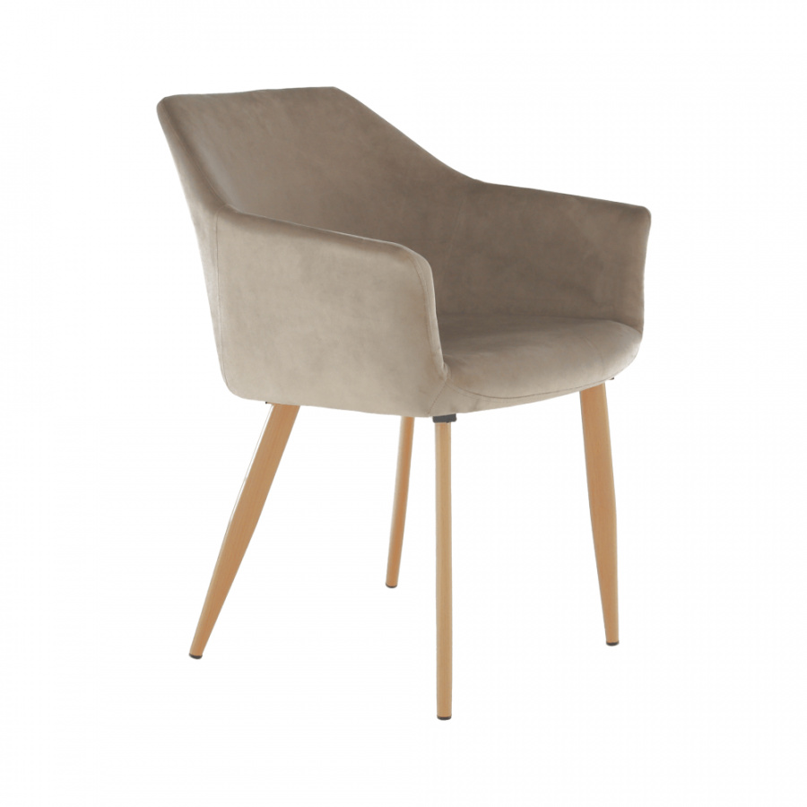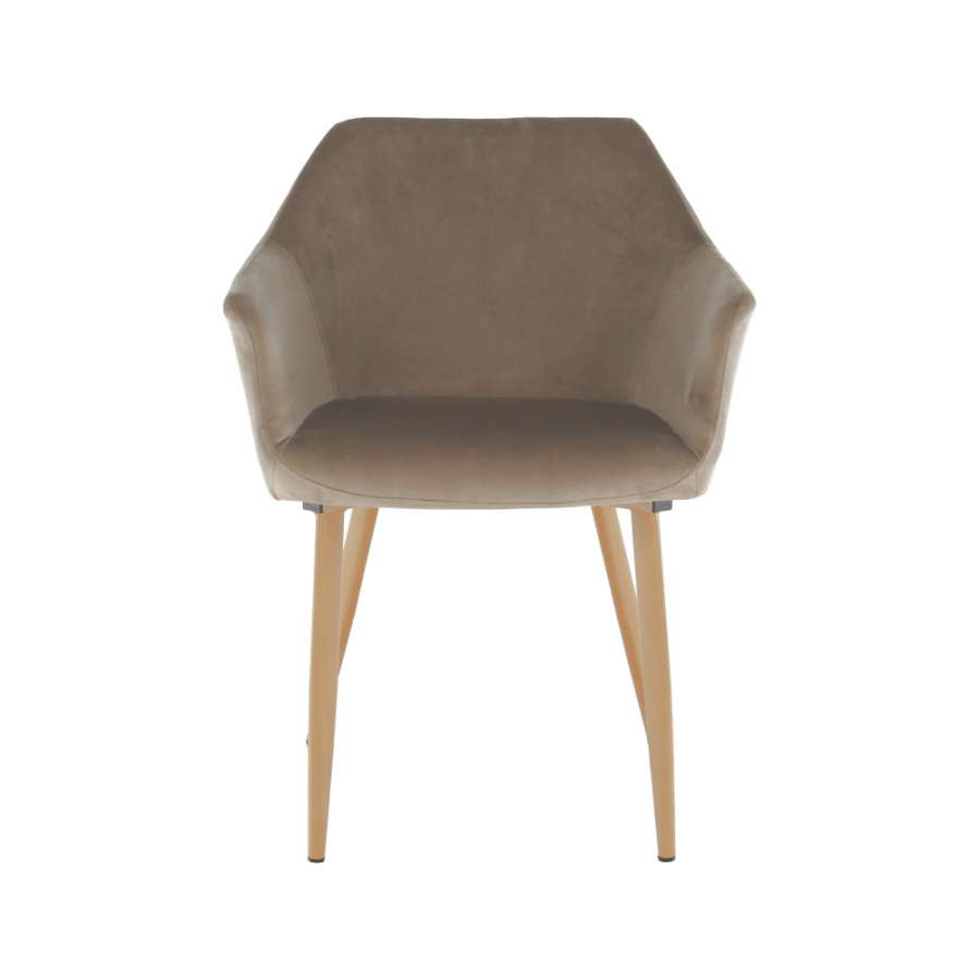Designové křeslo ODOVEL Materiál: látka velvet / kov Barva: taupe / buk Rozměry (ŠxHxV): 56x63x78 cm Výška sedu: 47,5 cm Hloubka sedu: 46 cm Dodávané v demontu.