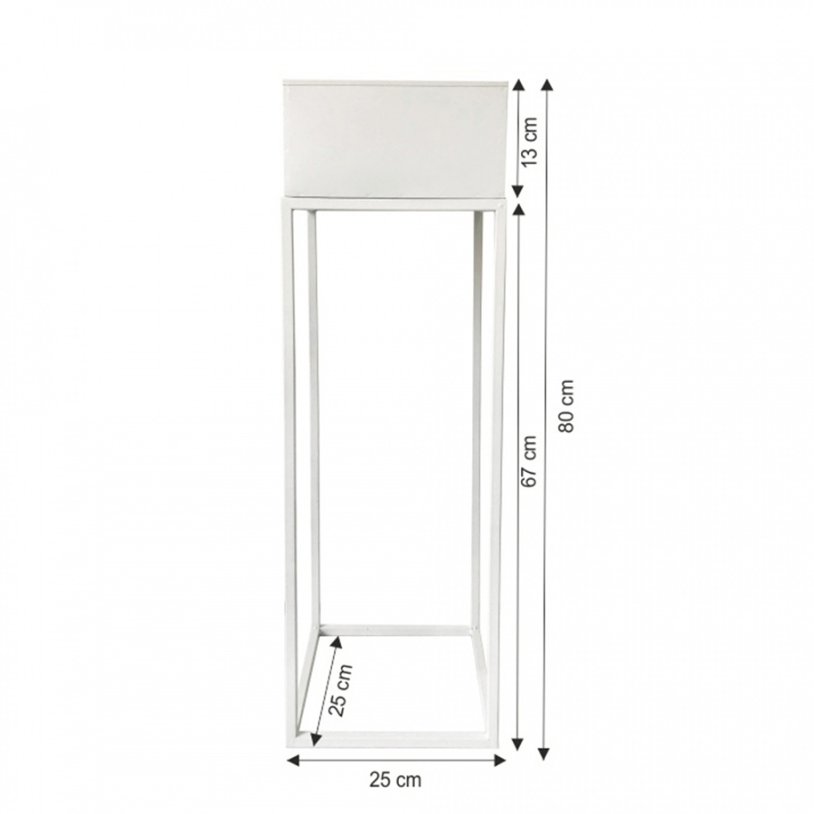 Materiál: kov Barva: bílá Rozměry (ŠxHxV): 25x25x80 cm Výška květináče bez stojanu: 13 cm Nosnost: 15 kg Vhodný do interiéru moderní design všestranné využití Dodávané v demontu