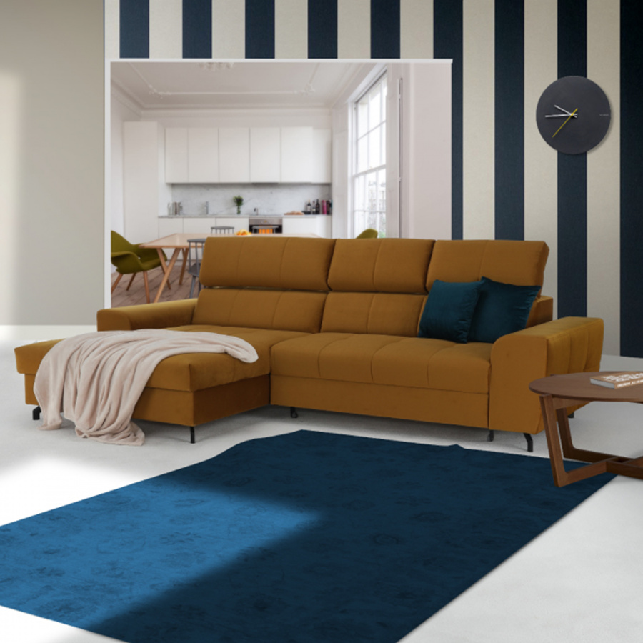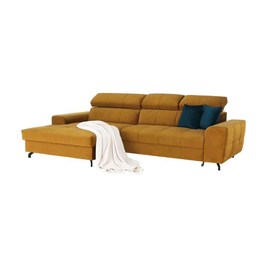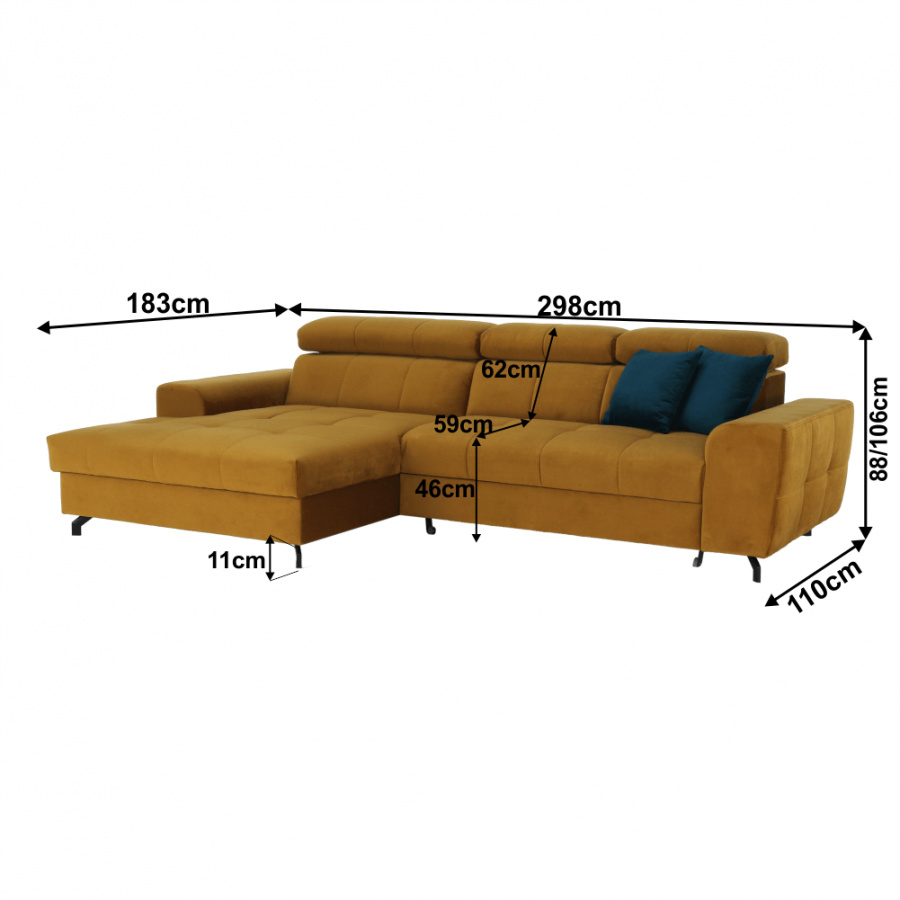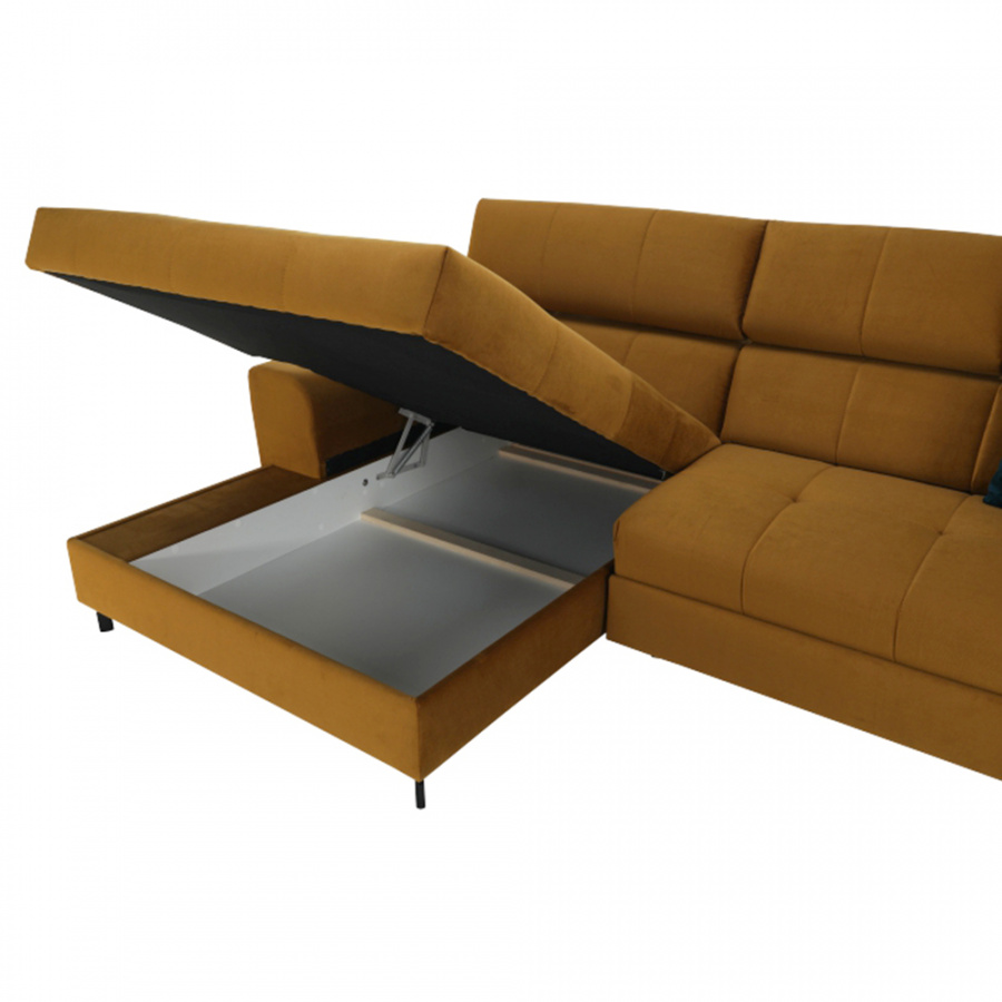Rohová celočalouněná rozkládací sedací souprava s úložným prostorem GINIO