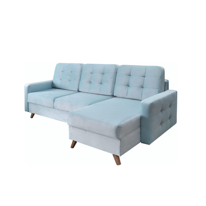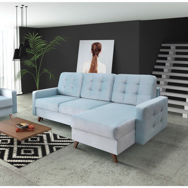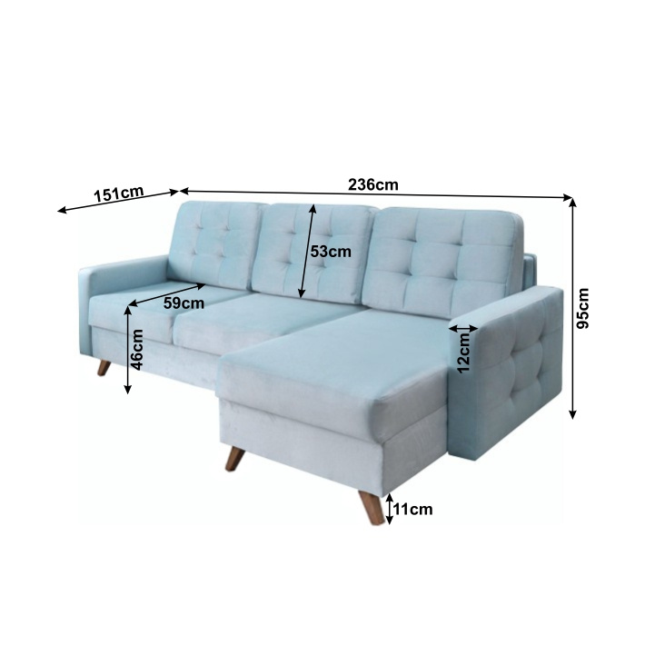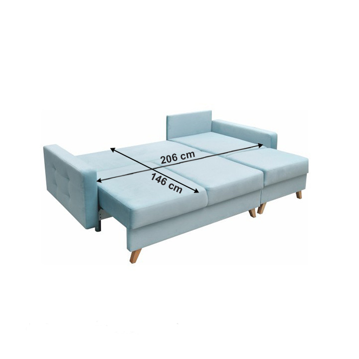 Rohová univerzální celočalouněná rozkládací sedací souprava s úložným prostorem MEDLIN Materiál: látka Kronos 26 mentolová / dřevo Barva: 26 mentolová / ořech Rozměry (ŠxHxV): 236x151x95 cm Plocha na spaní (ŠxD): 146x206 cm Výška úložného prostoru od podlahy: 11 cm Výplň: pružina faliste / HR pěna Výška sedu: 46 cm Hloubka sedu: 59 cm Univerzální Dodávané v demontu.