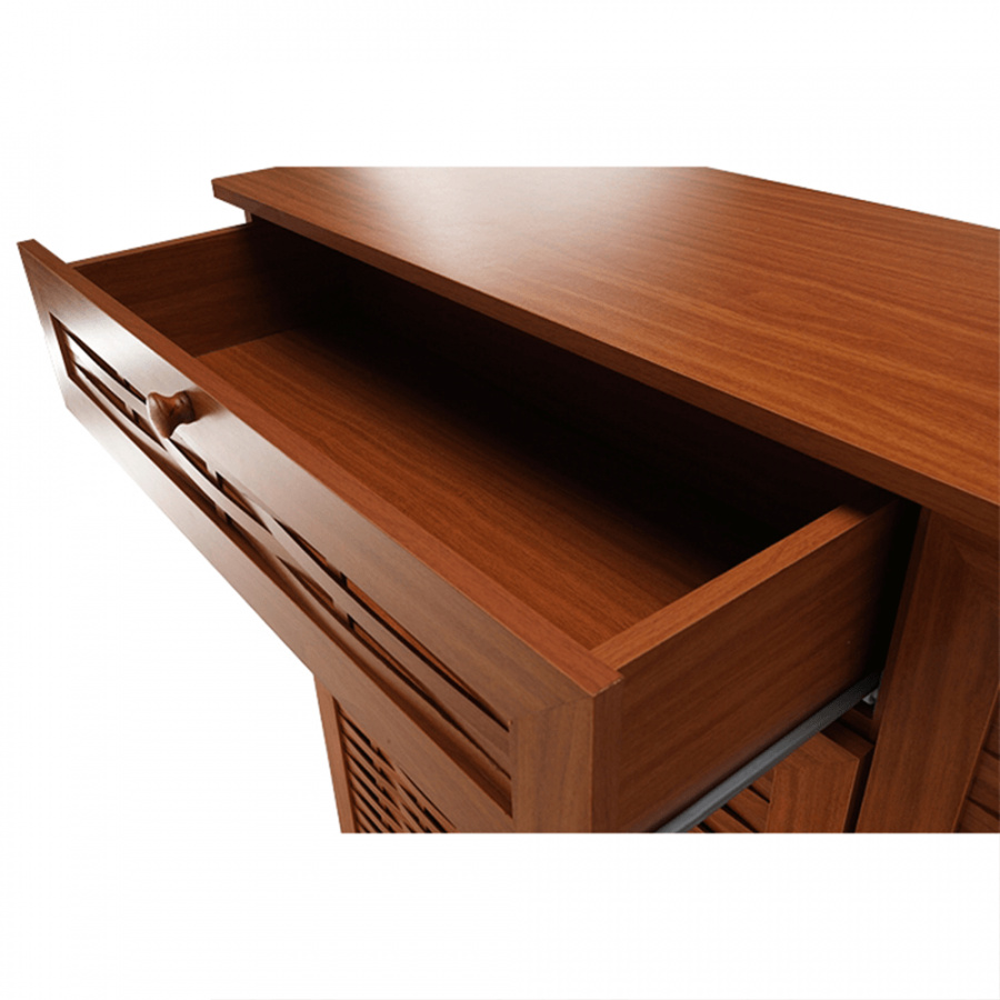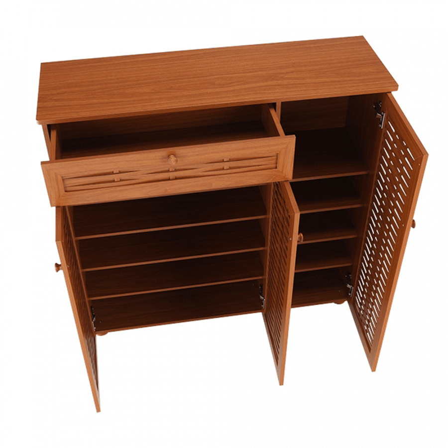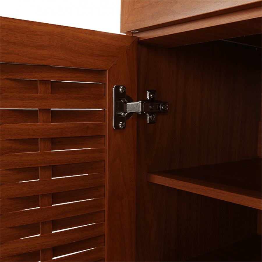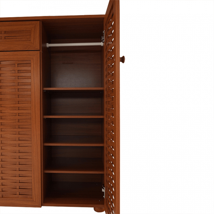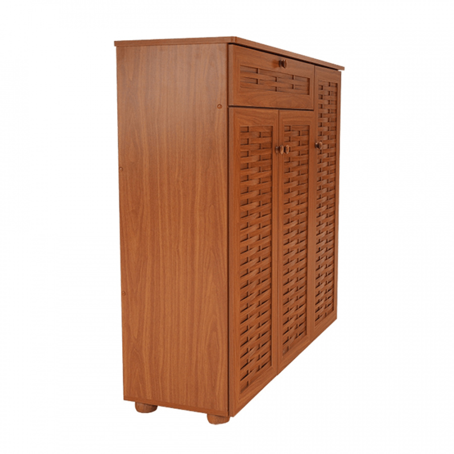 třídveřový botník se zásuvkou FP 04 Materiálové provedení: MDF laminovaná Barevné provedení: americká třešeň Rozměry ŠxHxV: 114,8x36,8x110,2 cm Dodávané v demontu.