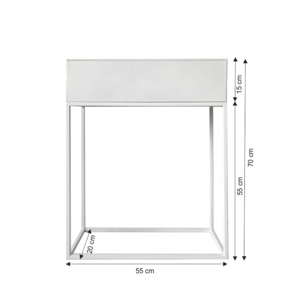 Materiál: kov Barva: bílá Rozměry (ŠxHxV): 55x20x70 cm Výška květináče bez stojanu: 15 cm Nosnost: 20 kg Vhodný do interiéru moderní design všestranné využití Dodávané v demontu
