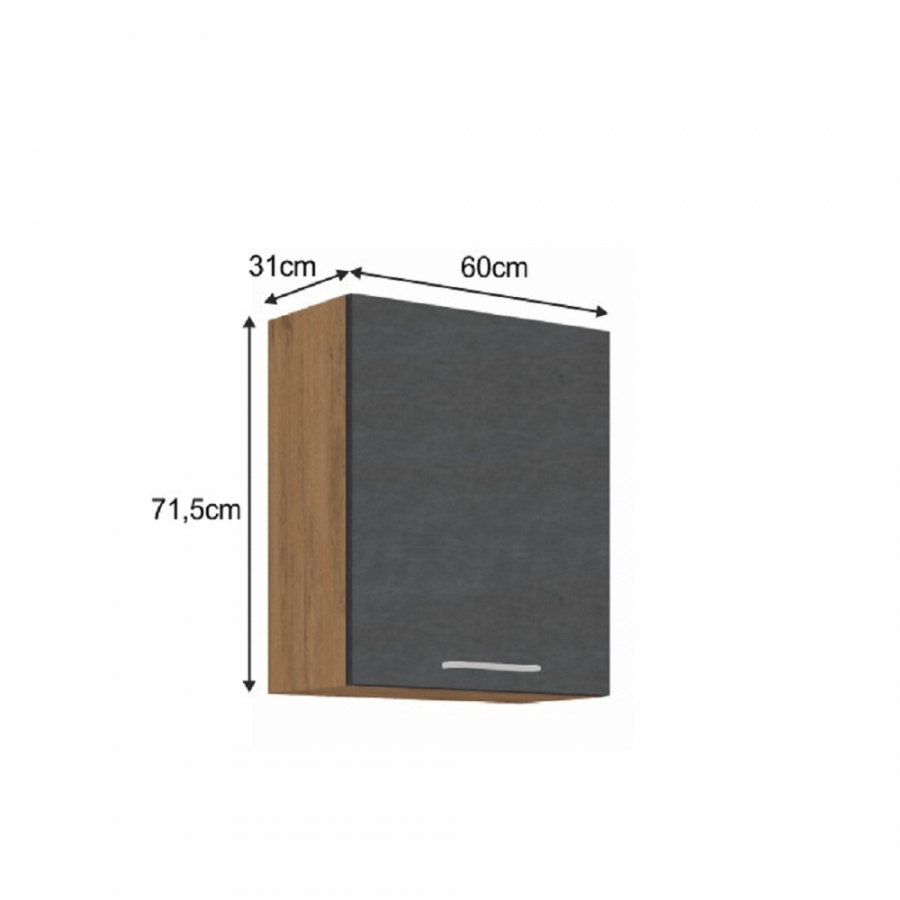 Horní skříňka Vega 60 G-72 1F Materiál: DTD laminovaná Barva: dub lancelot / šedá matná Rozměry (ŠxHxV): 60x31x71,5 cm Systém tichého zavírání dvířek Dodávané v demontu Spodní skříňky jsou dodávány včetně dolní lišty, bez pracovní desky. Možnost dokoupit pracovní desku dub lancelot v ceně: 1.150, - Kč / m. Možnost dokoupit univerzální L / P dřez v ceně 1.990, - Kč.