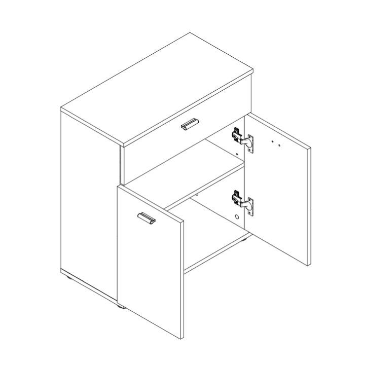 Komoda dvoudveřová s jednou zásuvkou, Materiál: DTD laminovaná, Barevné provedení: buk Rozměry ŠxHxV: 61,1x29,8x68,9 cm Tloušťka materiálu: 16 mm Dodávané v demontu.