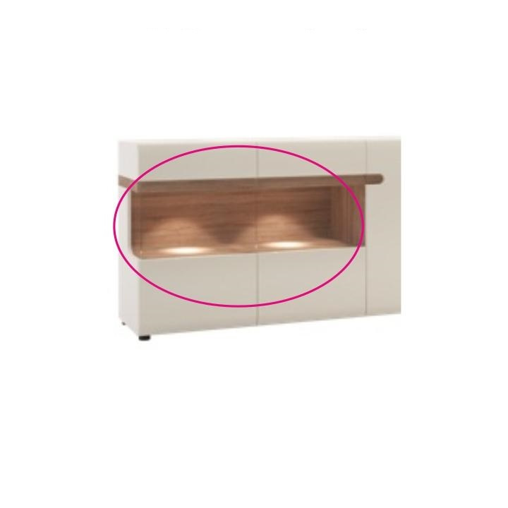 Vitrina LYOV02P, dub riviera / bílá s extra vysokým leskem, LEONARDO