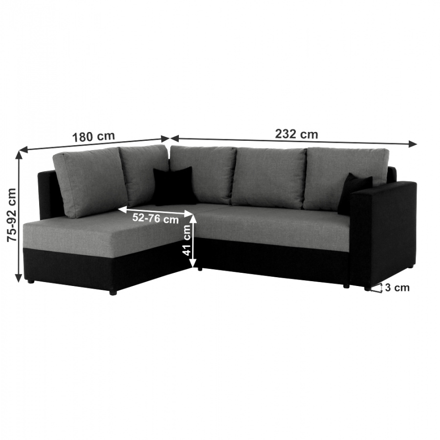 Rozměry: (ŠxHxV): 232x180x75 / 92 cm.