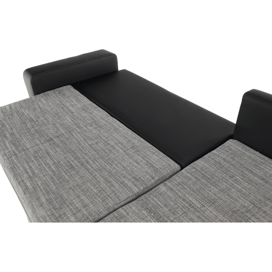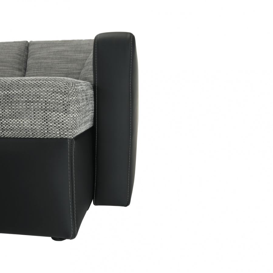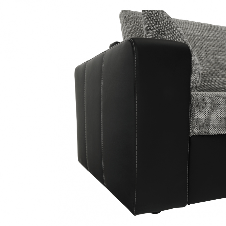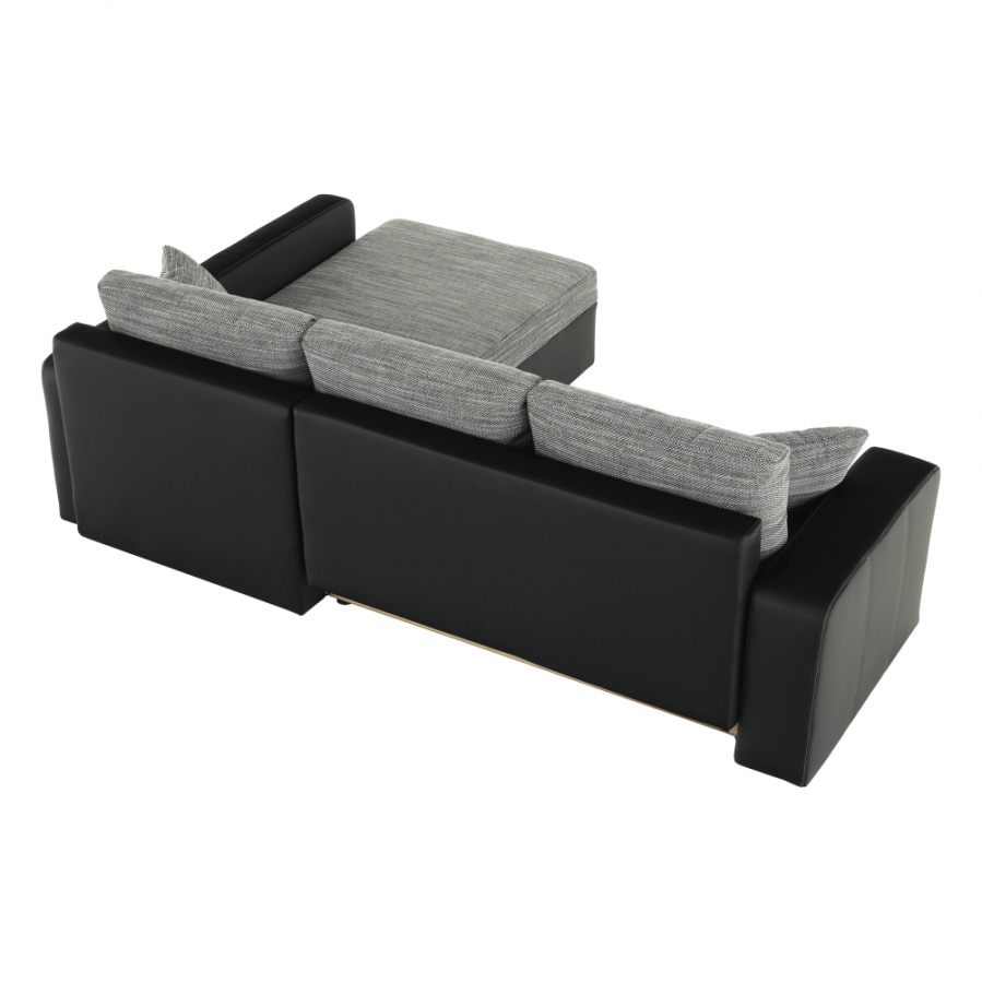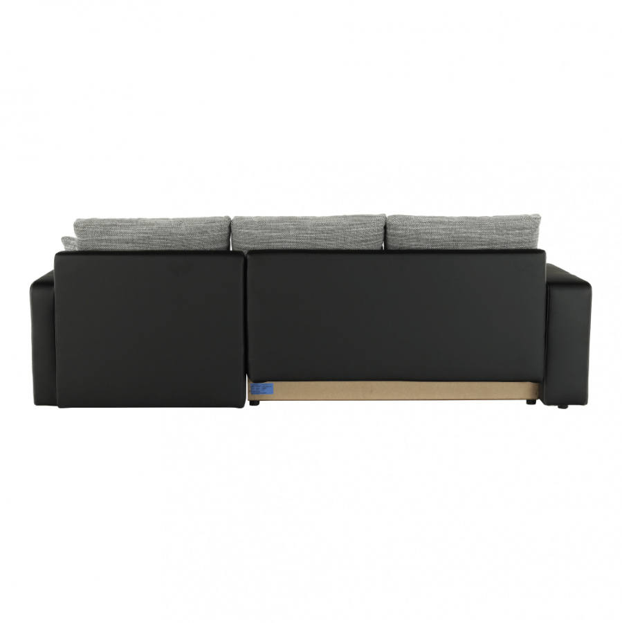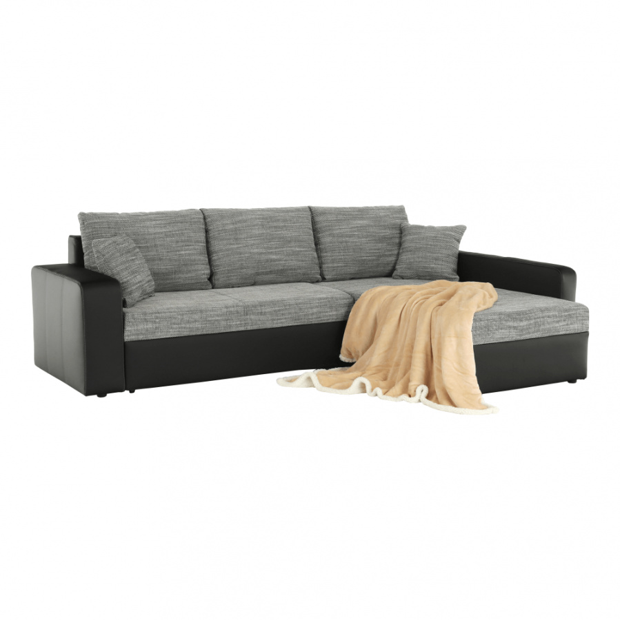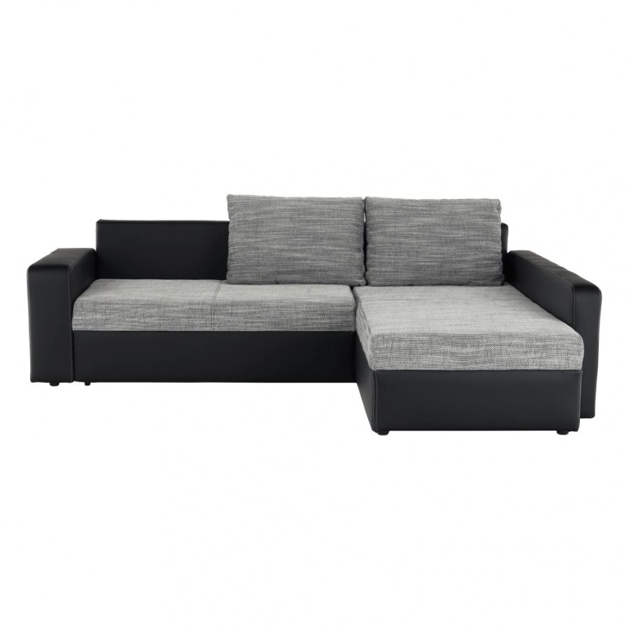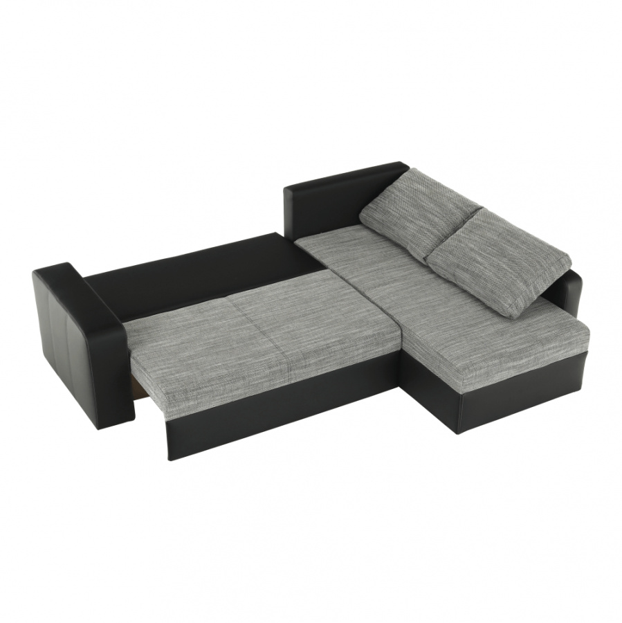 univerzální (L / P) rohová rozkládací sedací souprava s úložným prostorem, provedení: ekokůže černá 329/06 + šenil šedá látka 424/06. Rozměry (ŠxHxV): 244x174x70/81 cm, plocha na spaní 131x211 cm.Výška spodního prostoru od podlahy: 3 cm