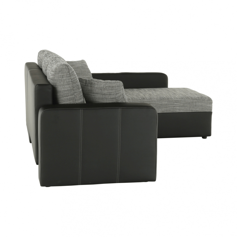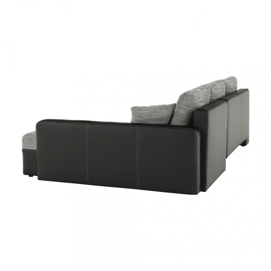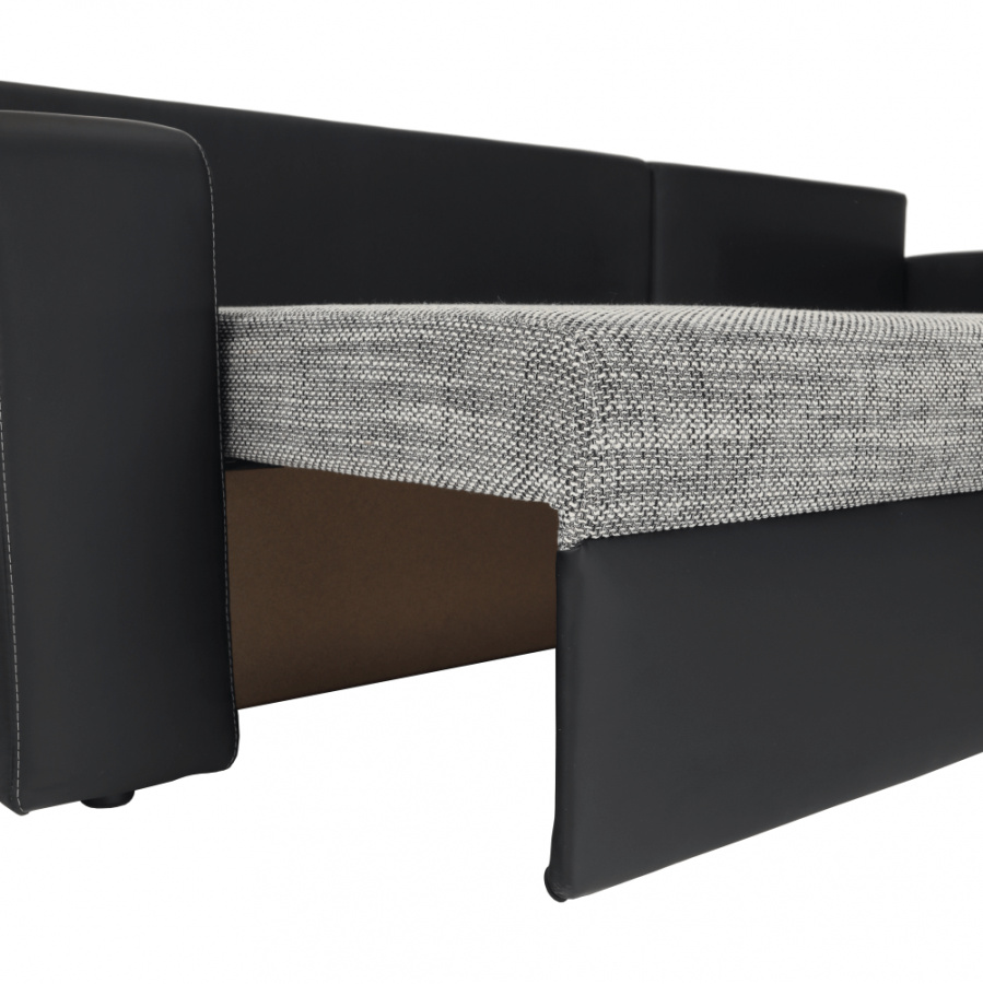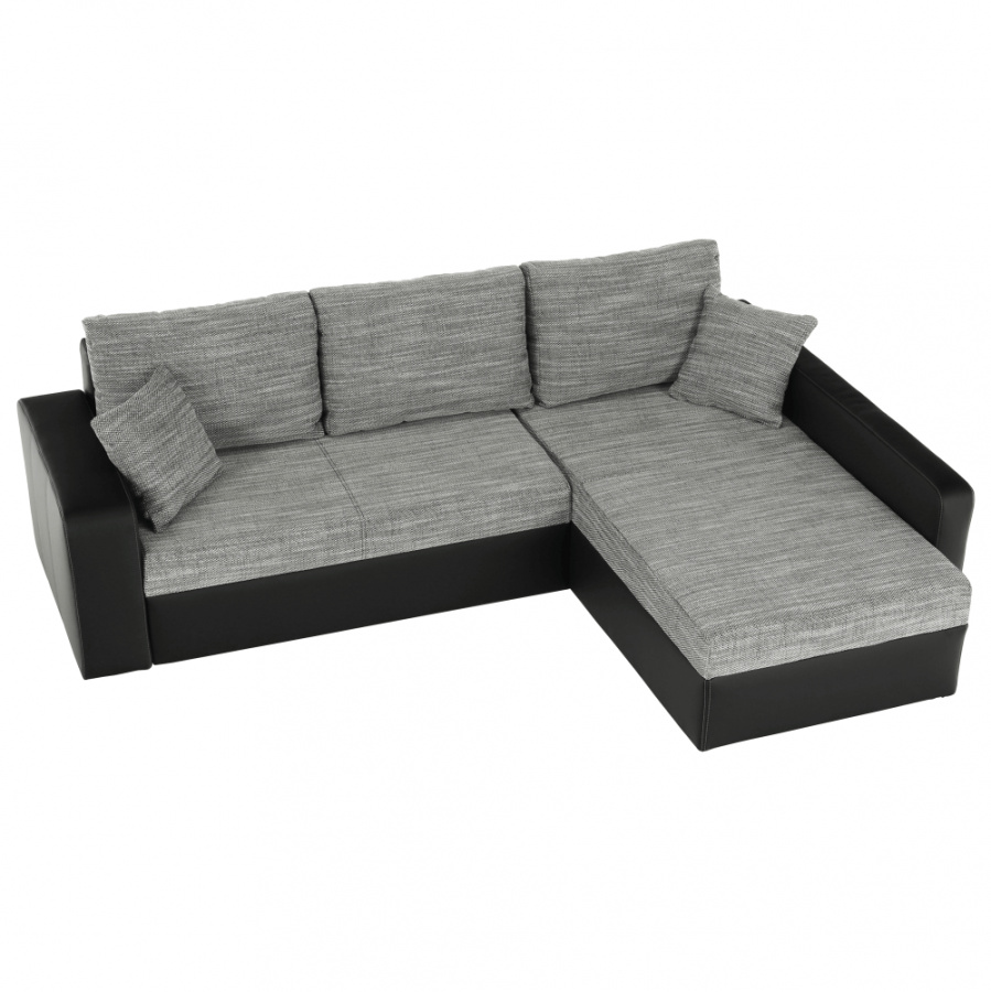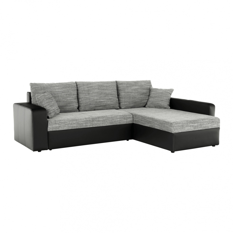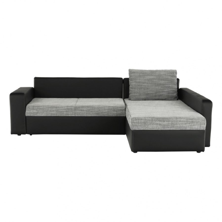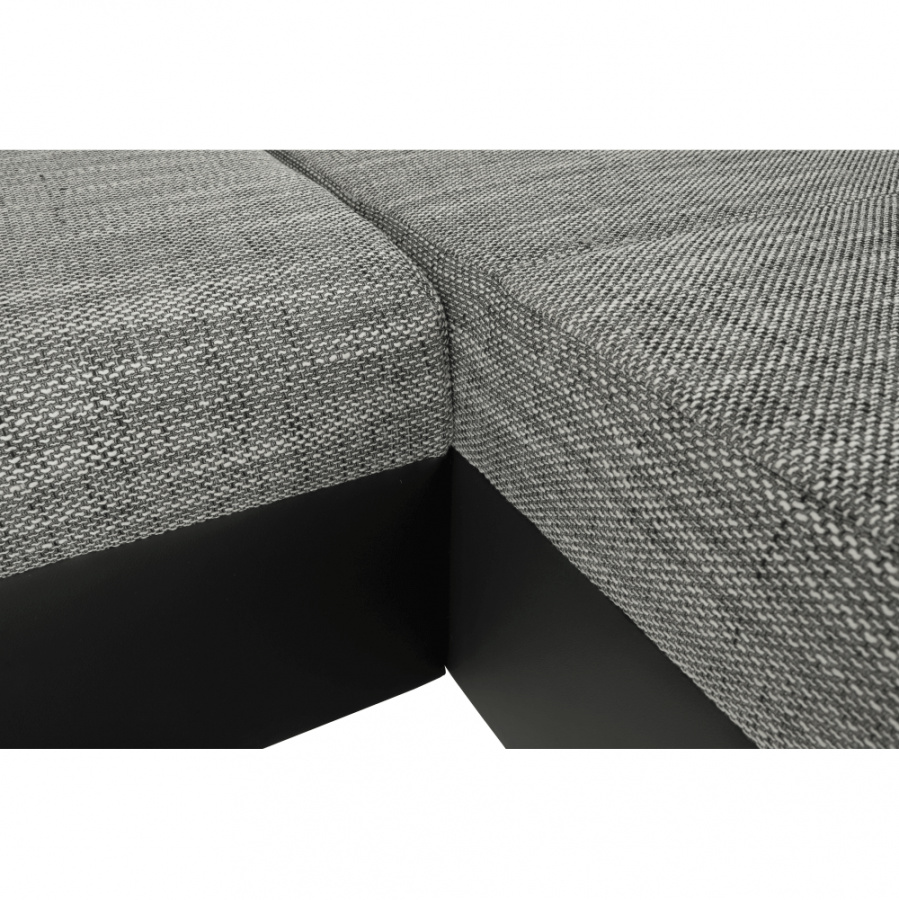 univerzální (L / P) rohová rozkládací sedací souprava s úložným prostorem, provedení: ekokůže černá 329/06 + šenil šedá látka 424/06. Rozměry (ŠxHxV): 244x174x70/81 cm, plocha na spaní 131x211 cm.Výška spodního prostoru od podlahy: 3 cm