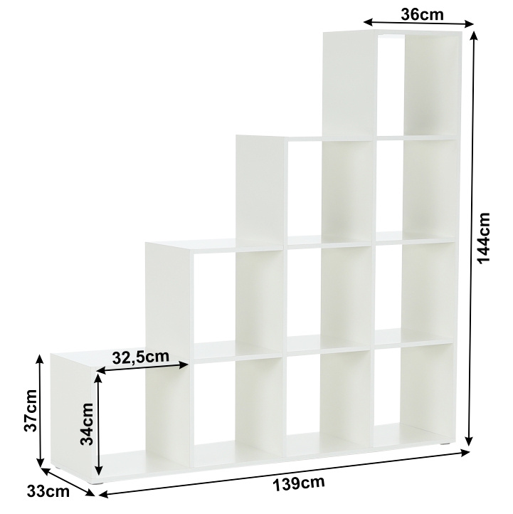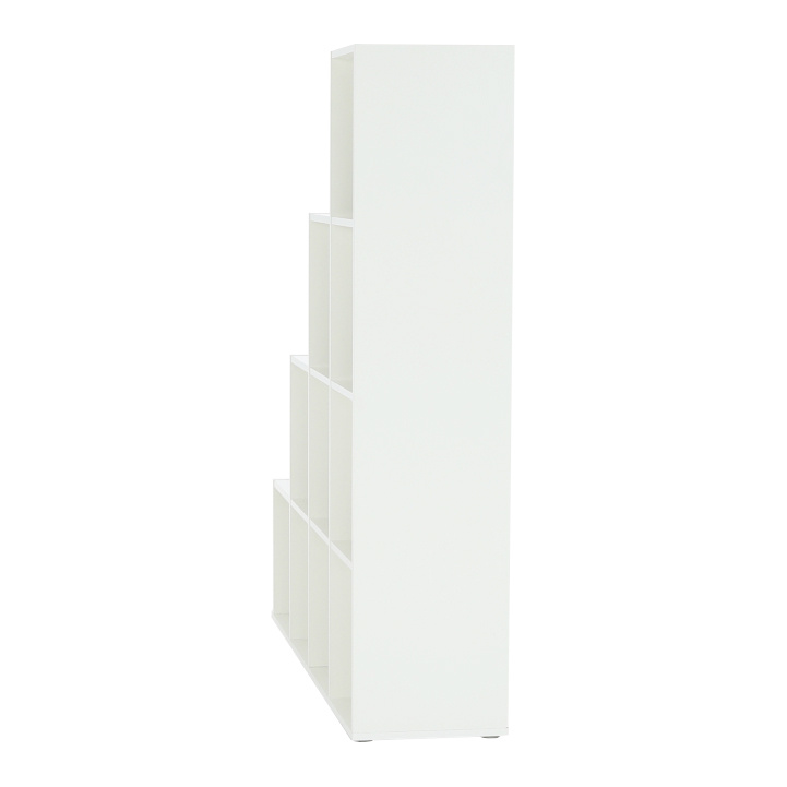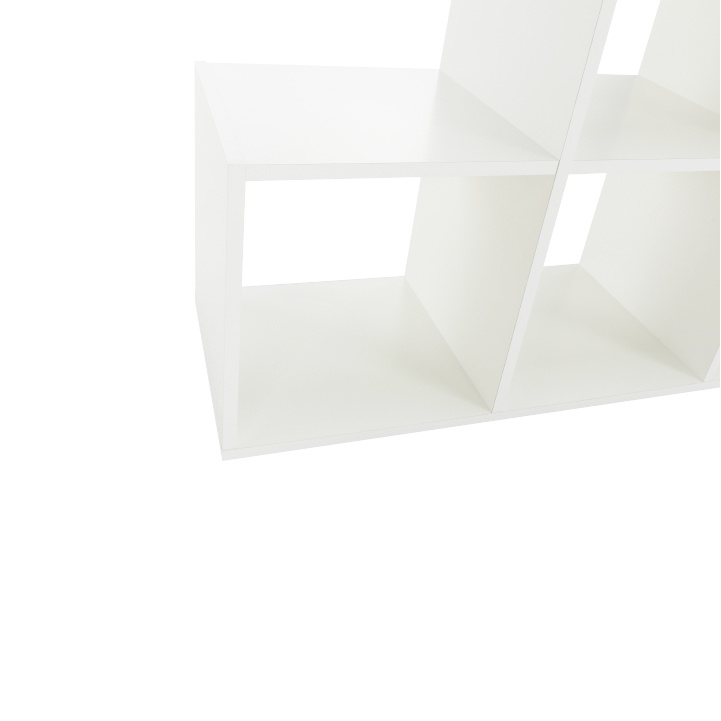 víceúčelový regál v moderním tvaru pyramidy s mnohostranným využitím. Vhodný do obývacího, dětského či studentského pokoje. Využijete ho ale hlavně v kanceláři, ve vaší pracovně, ale iv kuchyni. Je vyroben na Slovensku z kvalitní laminované dřevotřísky o síle lamina 16 mm. Je neutrální bílé barvy a rozměry jsou: ŠxVxH: 139x144x33 cm. Tloušťka materiálu: 16 mm