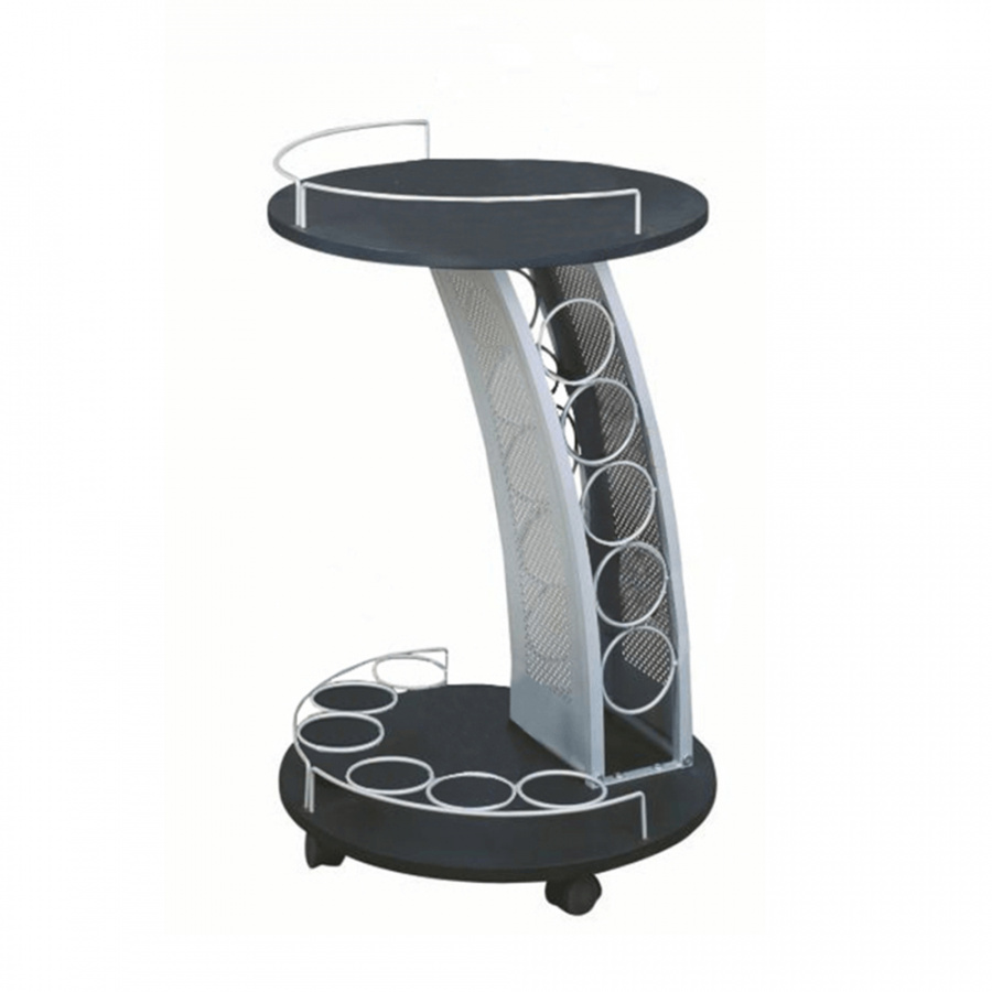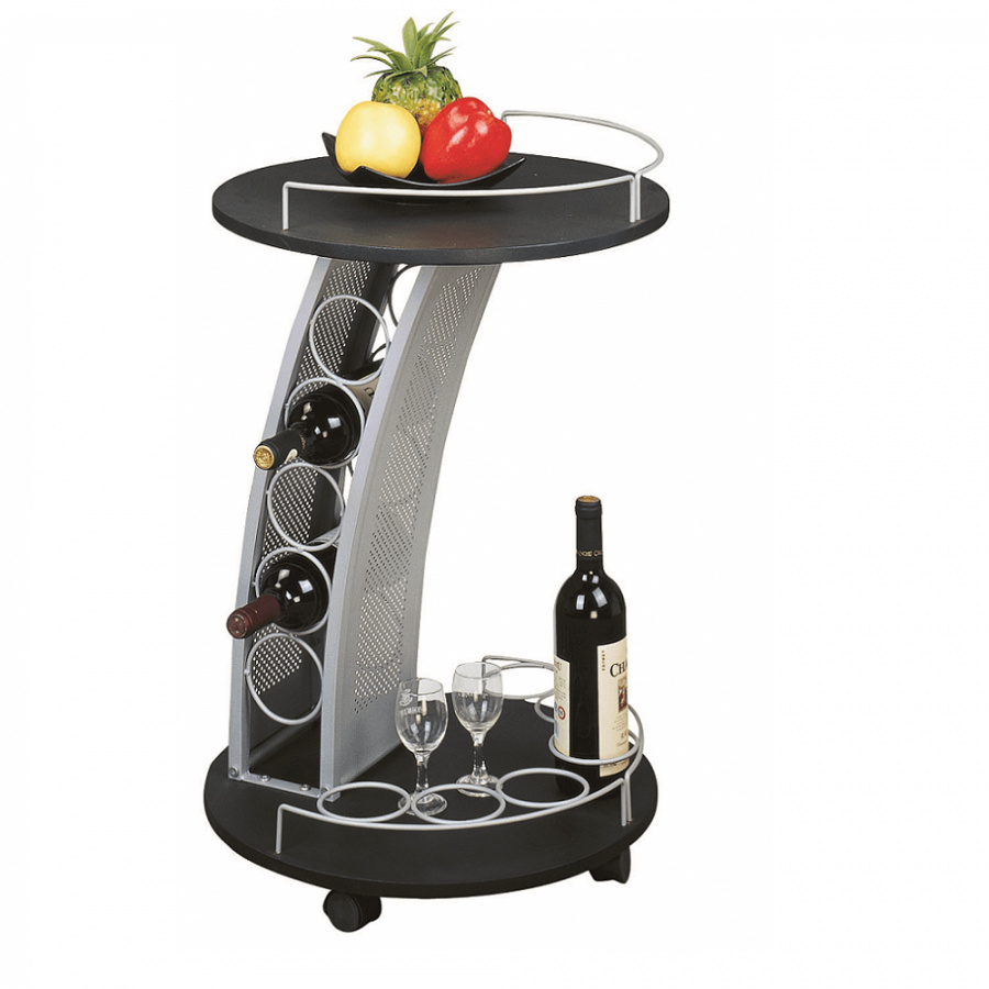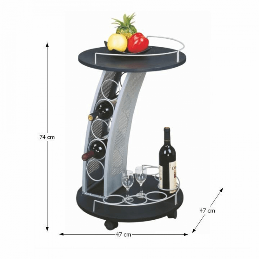 Servírovací stolek ALADAR s kolečky. Materiál: MDF / kov Barva: černá / stříbrná Rozměry (ŠxHxV): 47x47x74 cm Tloušťka materiálu: 15 mm