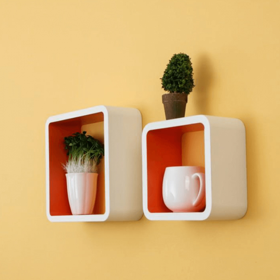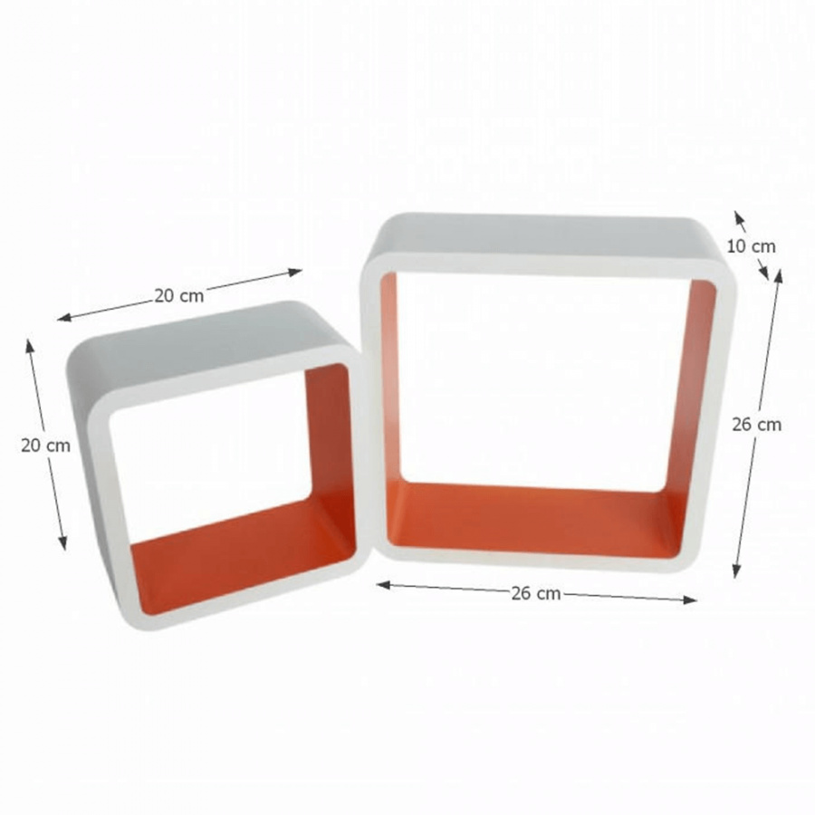 sada polic - 2 ks, materiál: MDF, provedení: bílo-oranžová, rozměry ŠxVxH: 1 - 26x26x10 cm, 2 - 20x20x10 cm,. Cena je za 2 ks.