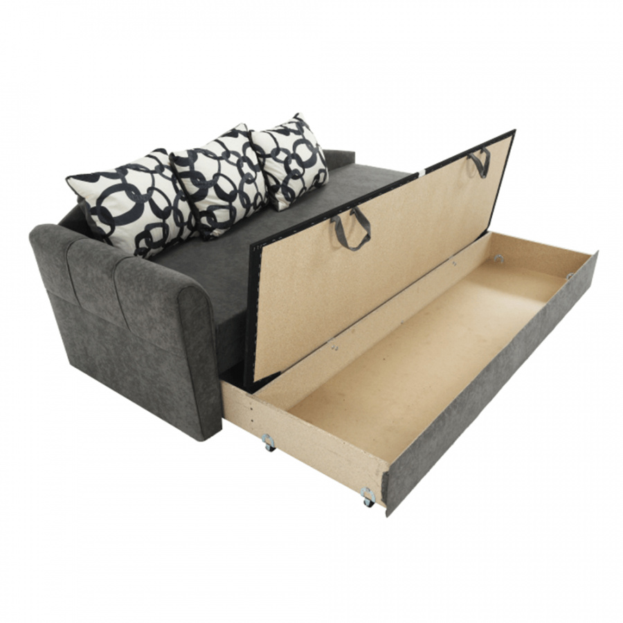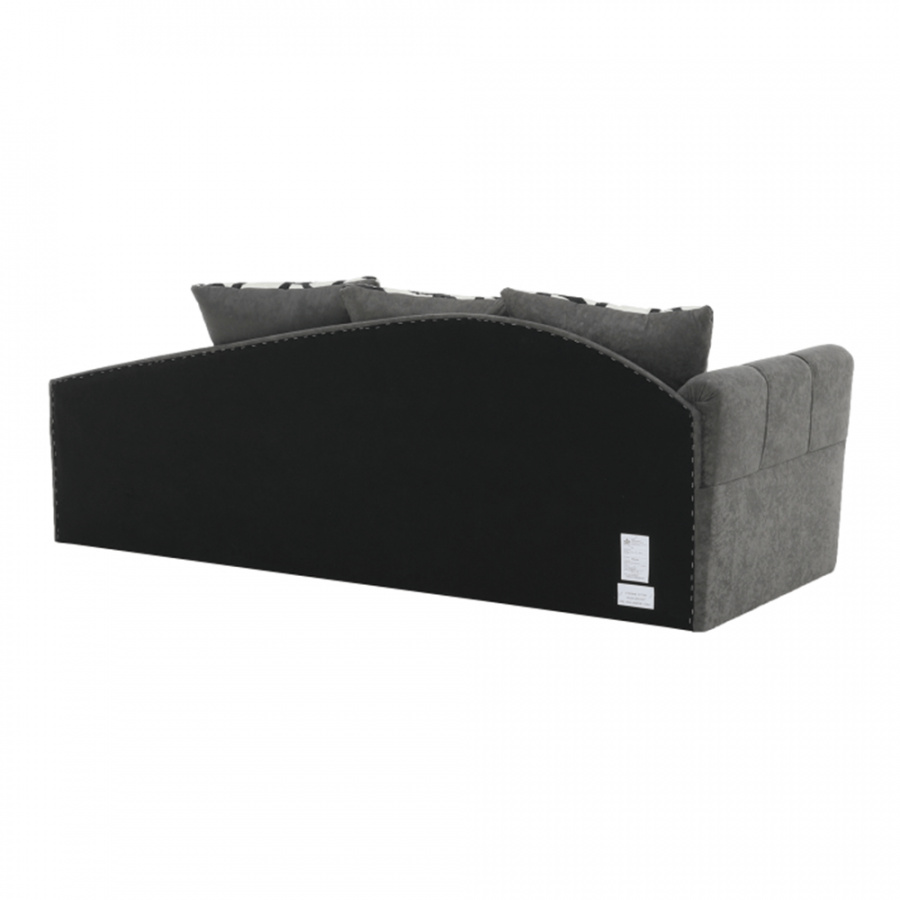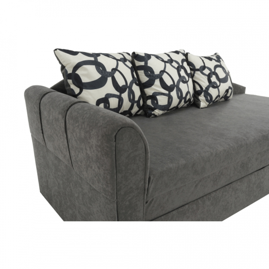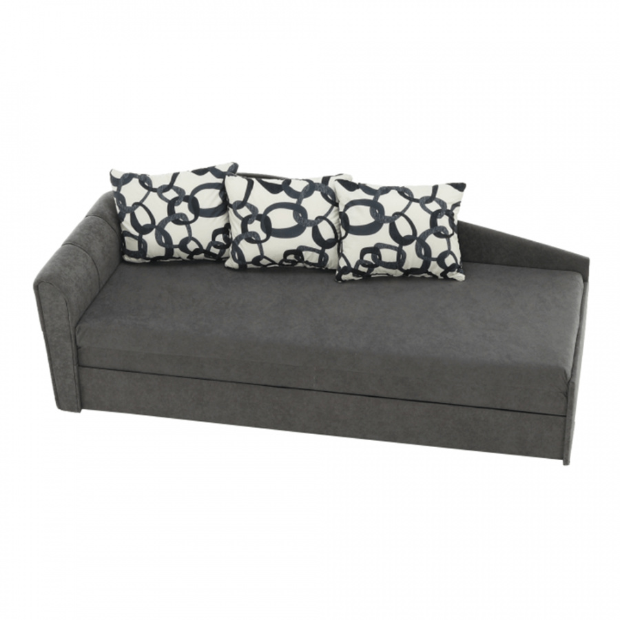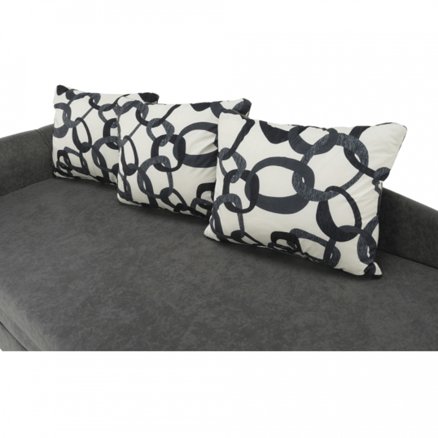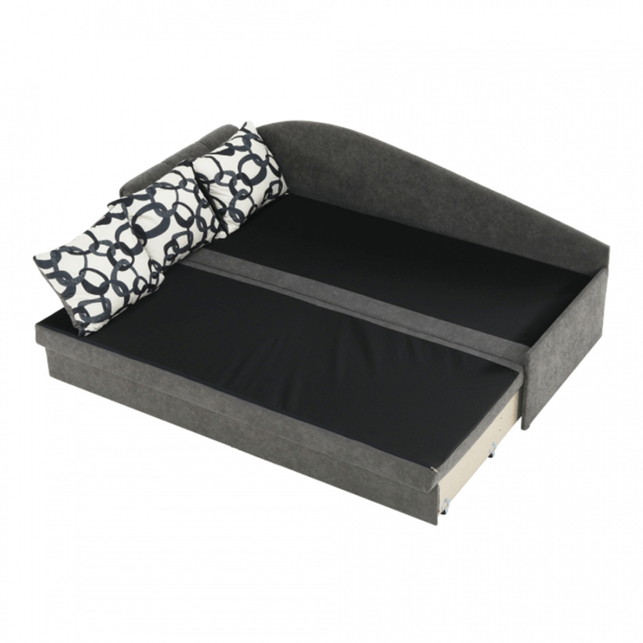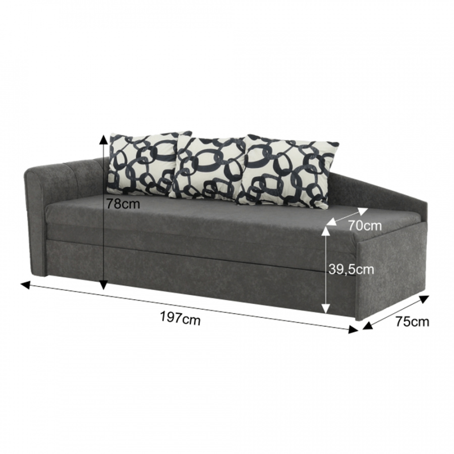 Rozkládací pohovka s úložným prostorem, Levé provedení, Materiál: alova šedá 36 / polštáře vzor B103. Rozměry ŠxHxV: 197x75x78 cm, Plocha na spaní ŠxD: 140x185 cm